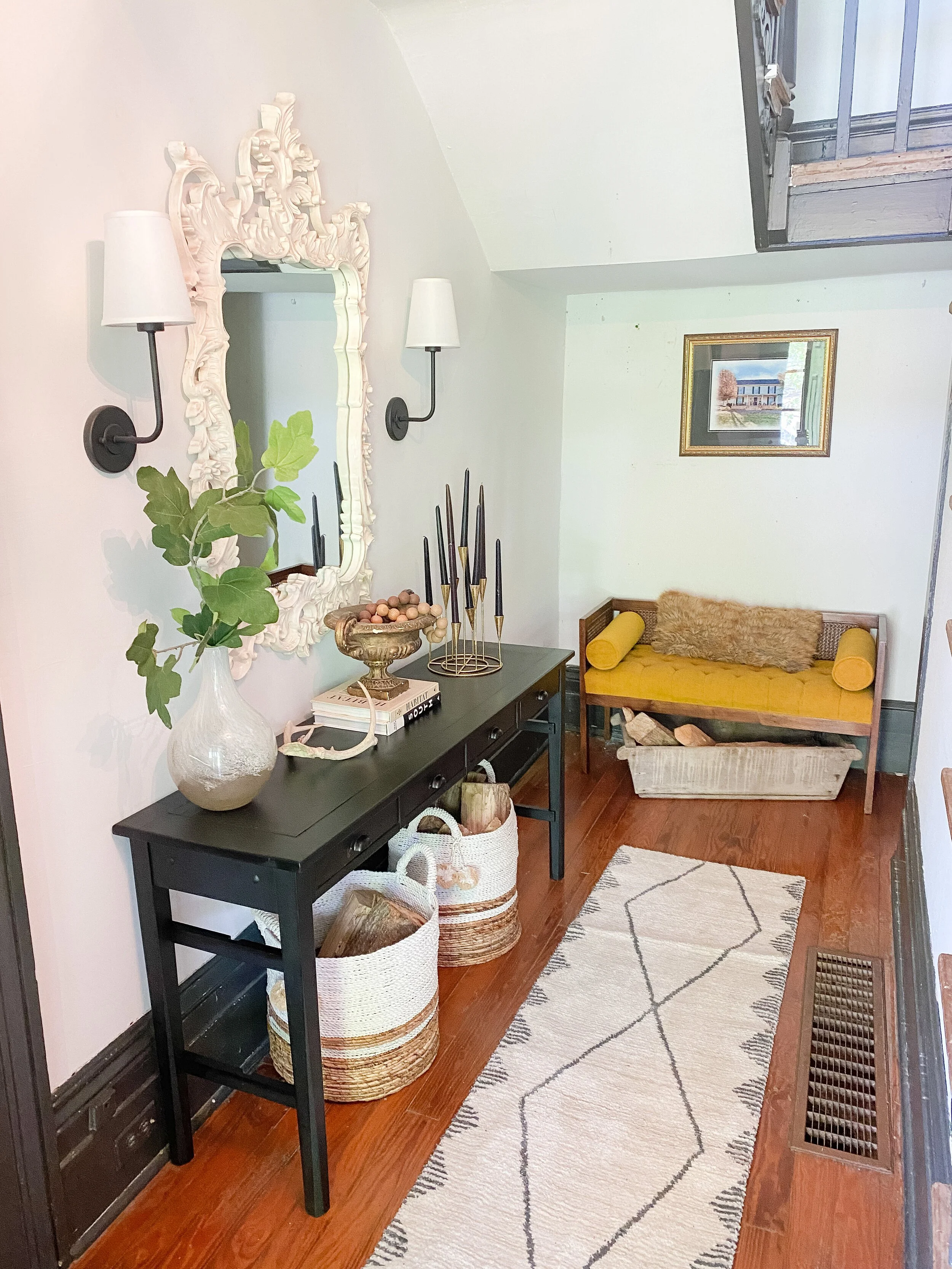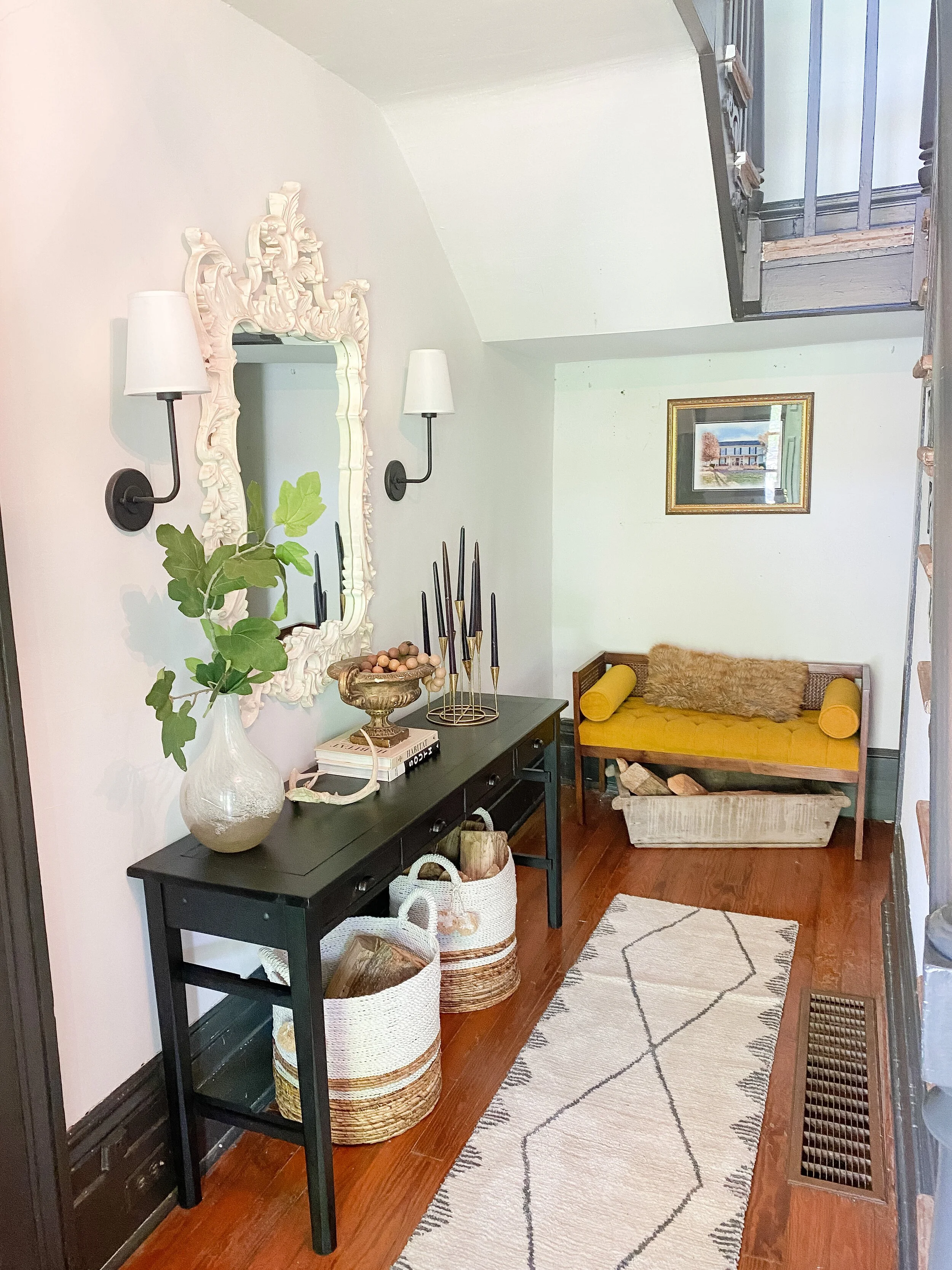 For this year’s One Room Challenge I will be making over….. MY ENTRYWAY! I ultimately decided on this space because it has so much potential and I had a lot of fun projects in mind for it that I thought would be perfect to showcase in this challenge. It’s not a space we use much right now or that I have enjoyed looking at lately, BUT I’m excited to make it brighter, cozier, and hopefully more open (more on that below)!