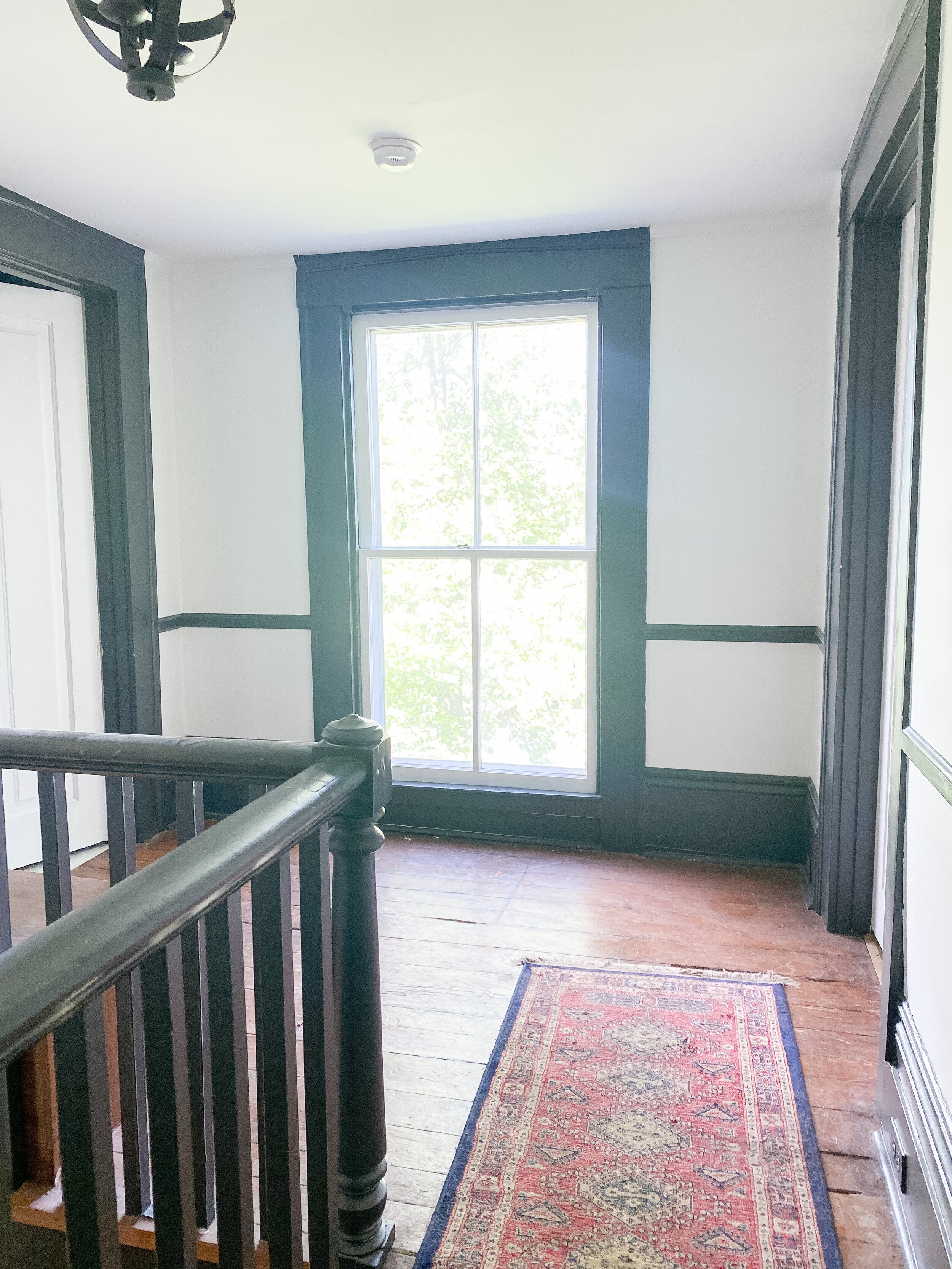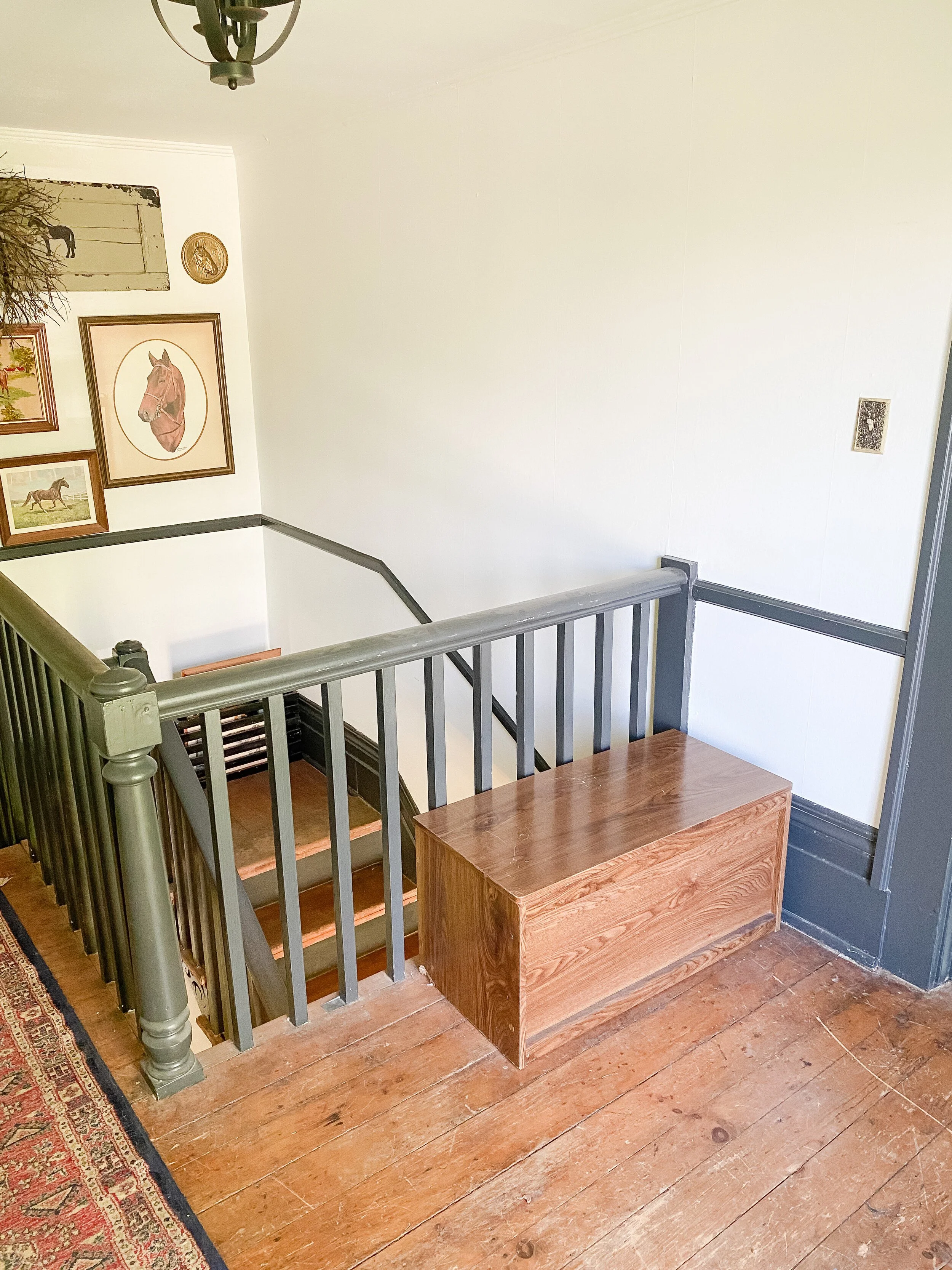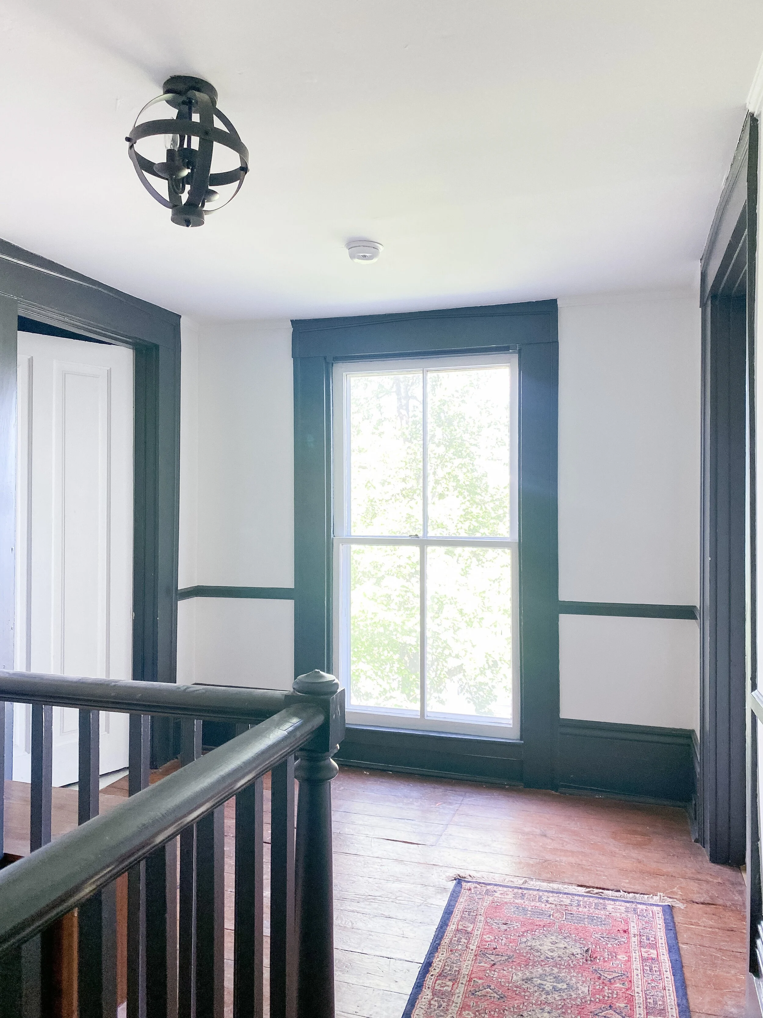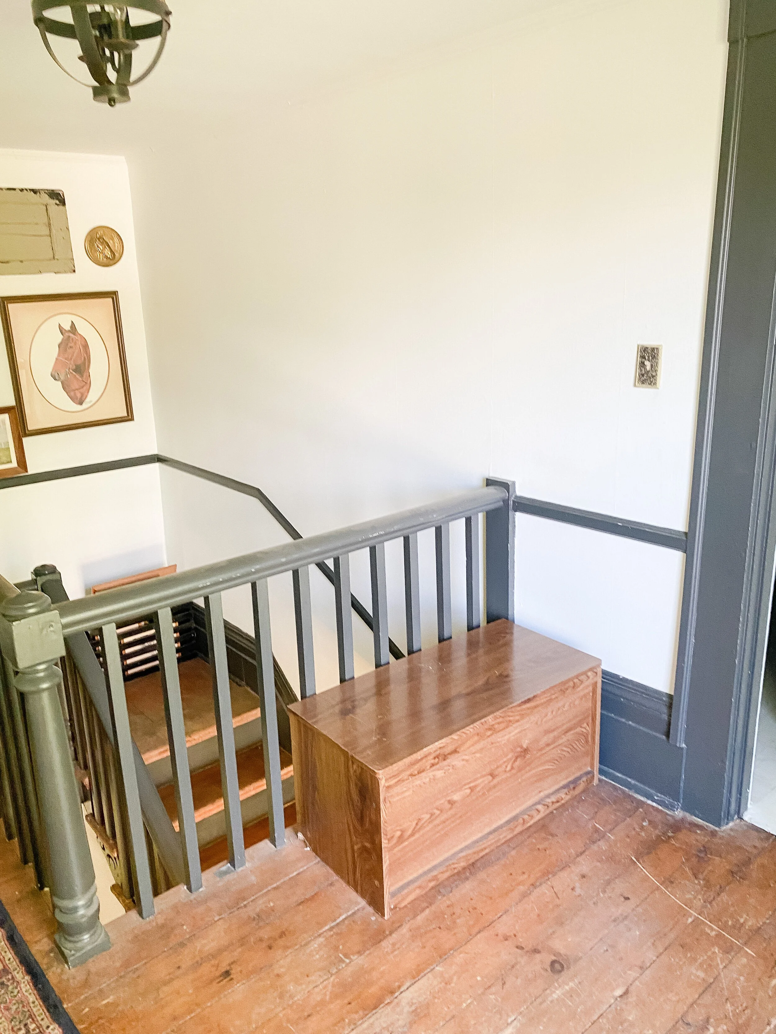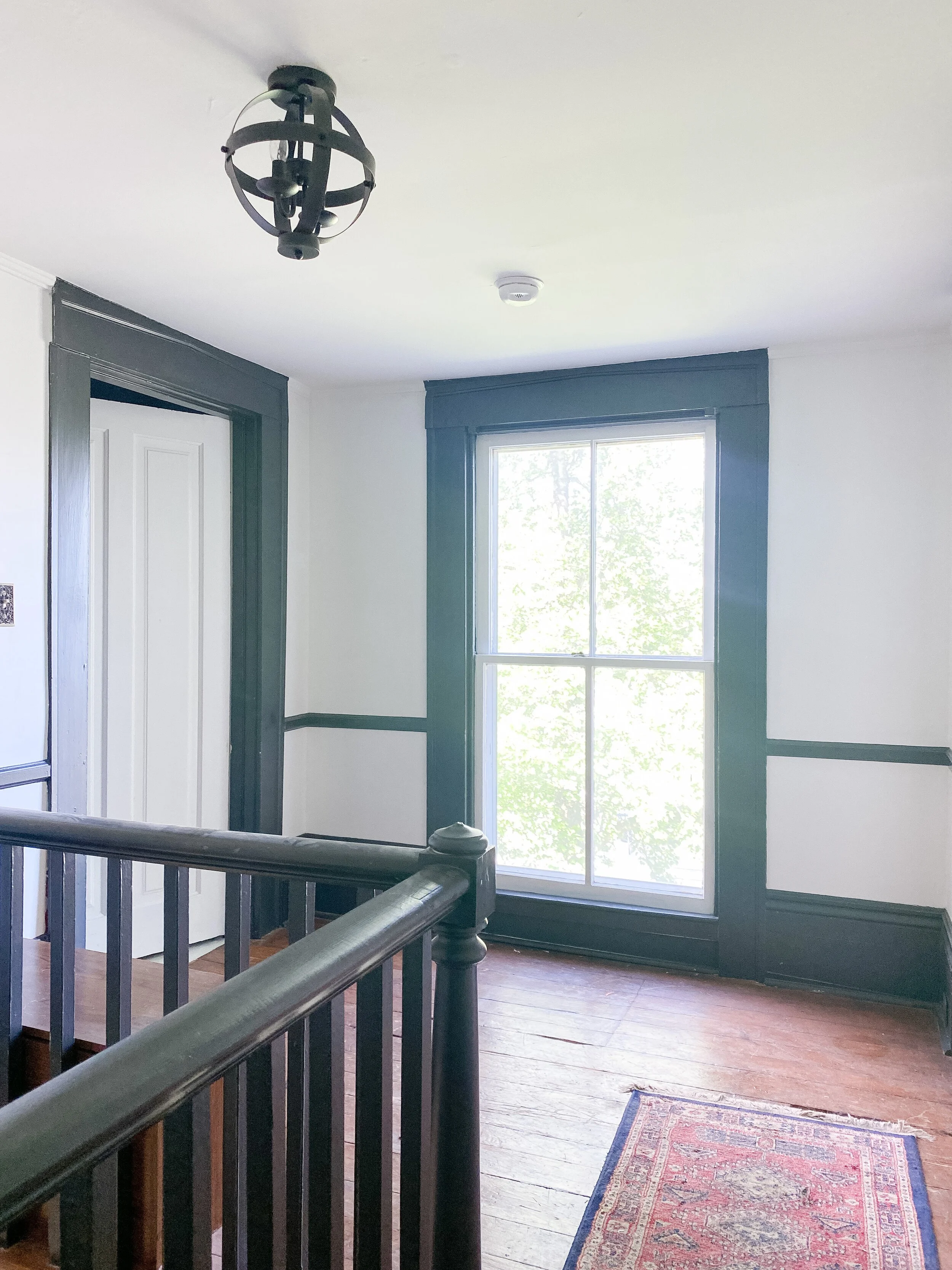 We also have a decent sized little landing at the top of the stairs which has doors into the guest room and John Woodford’s room. We’ve never utilized this space at all and I think it would be so fun and cozy to add a little desk station and/or reading nook up here. There’s so many fun ideas and this space gets such great light, that I am excited to put it to use and make it inviting!