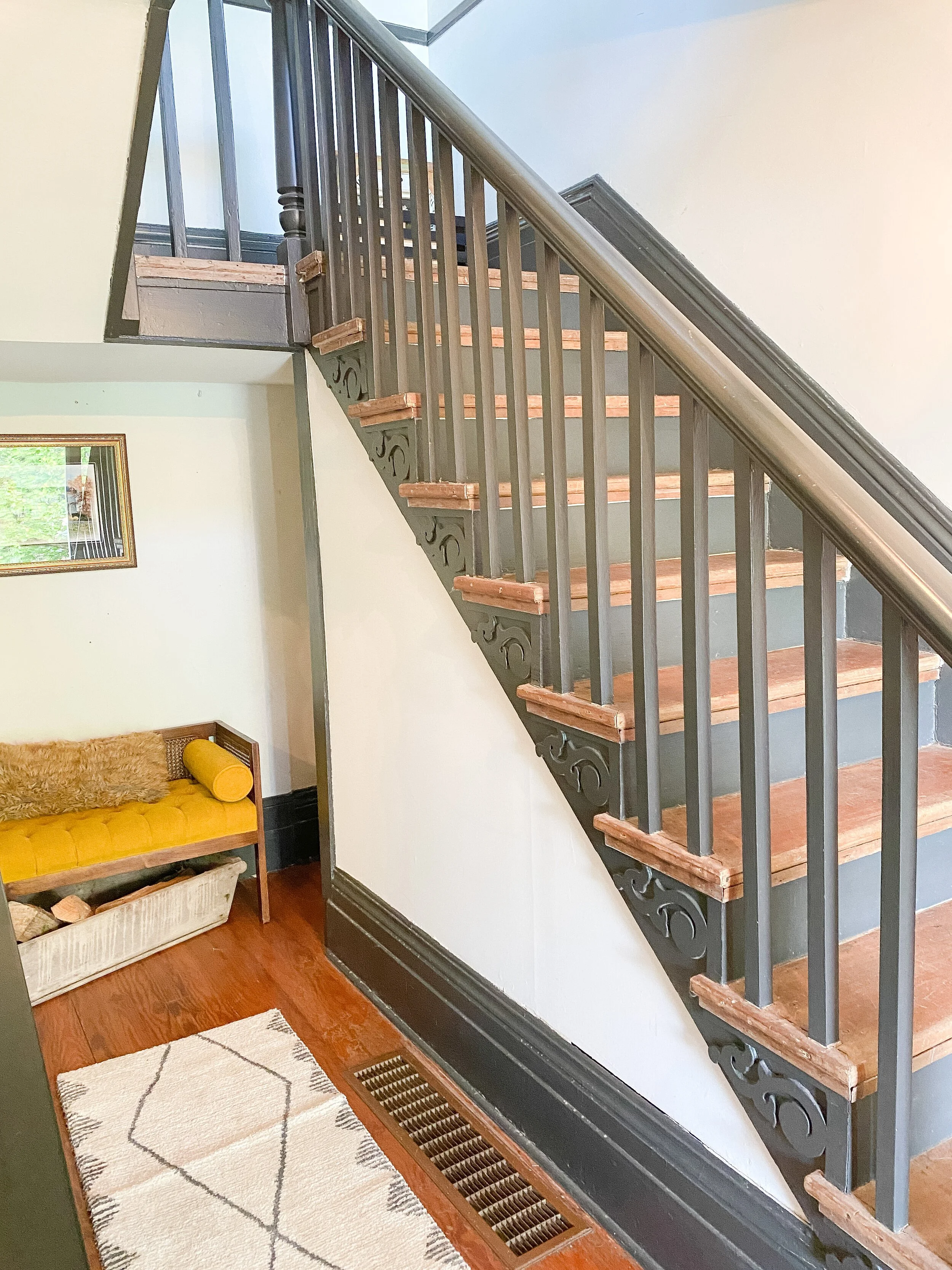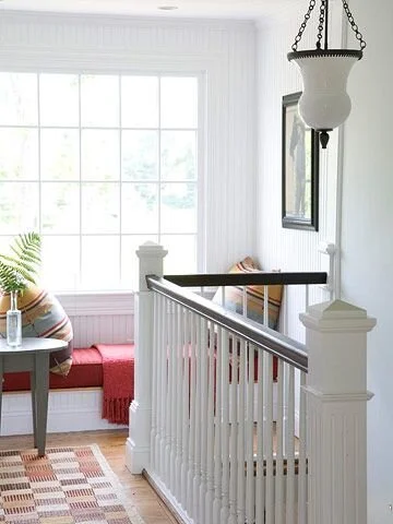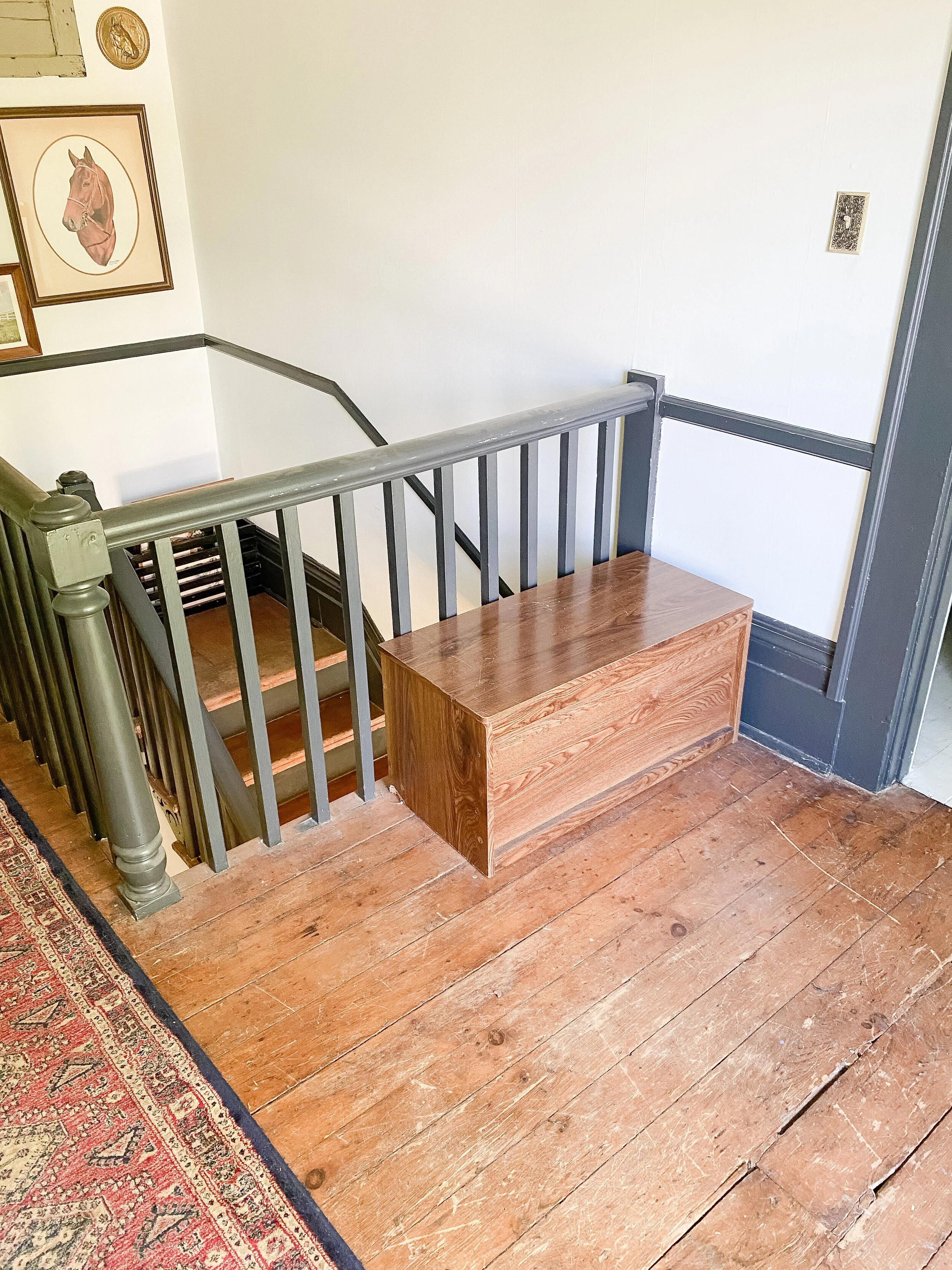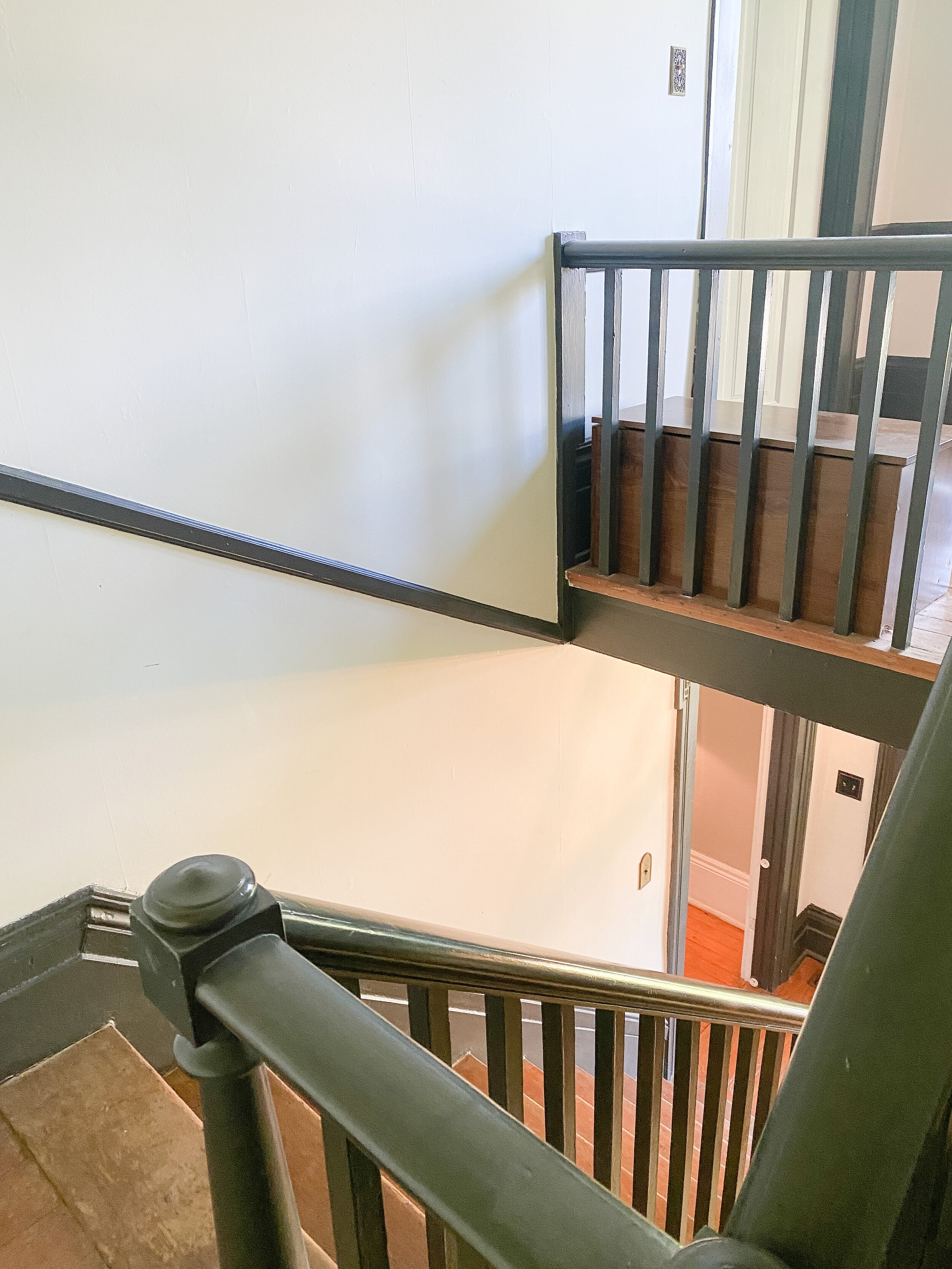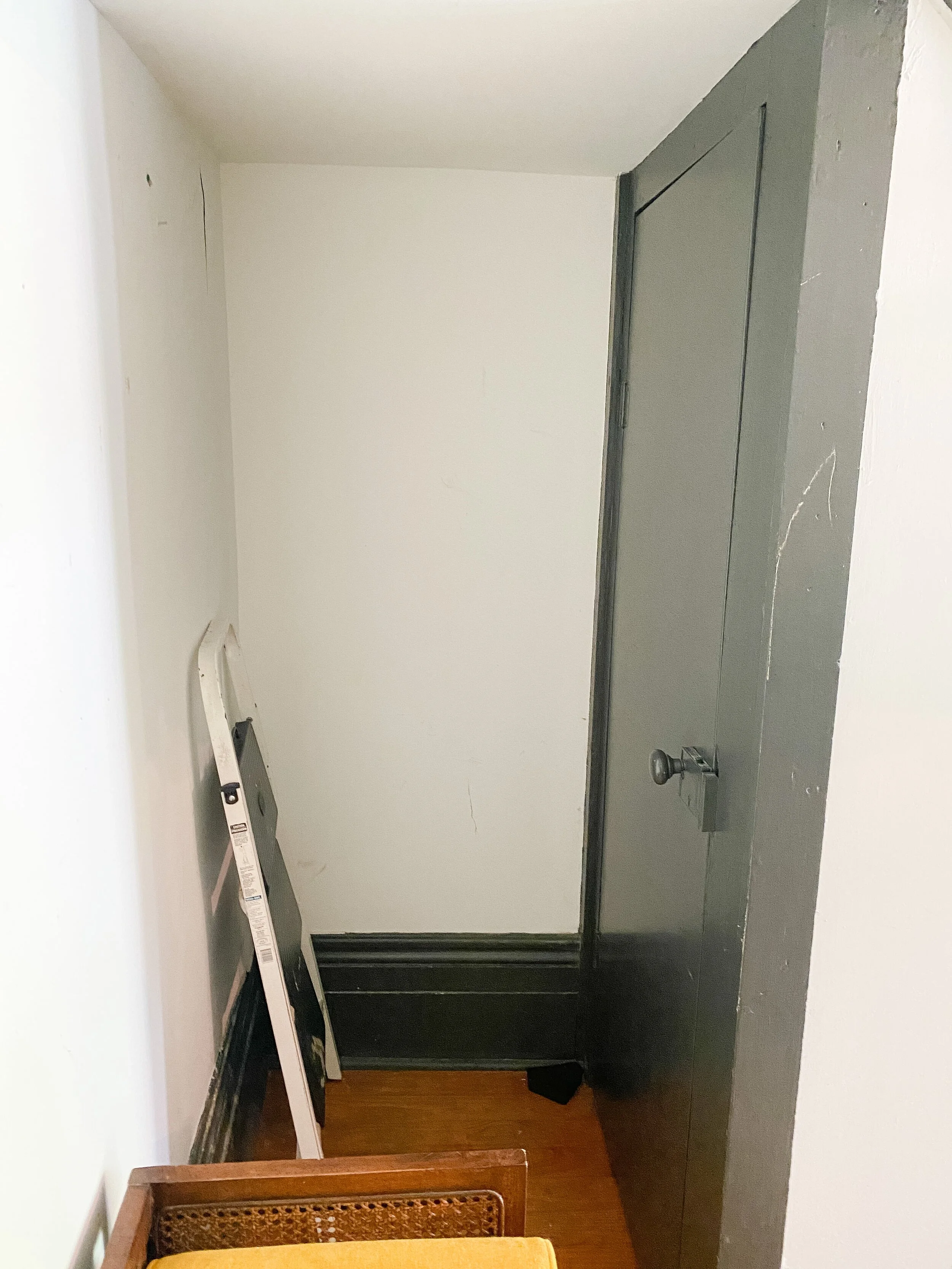 We also have a decent sized little landing at the top of the stairs which has doors into the guest room and John Woodford’s room. We’ve never utilized this space at all and I think it would be so fun and cozy to add a little desk station and/or reading nook up here. There’s so many fun ideas and this space gets such great light, that I am excited to put it to use and make it inviting!