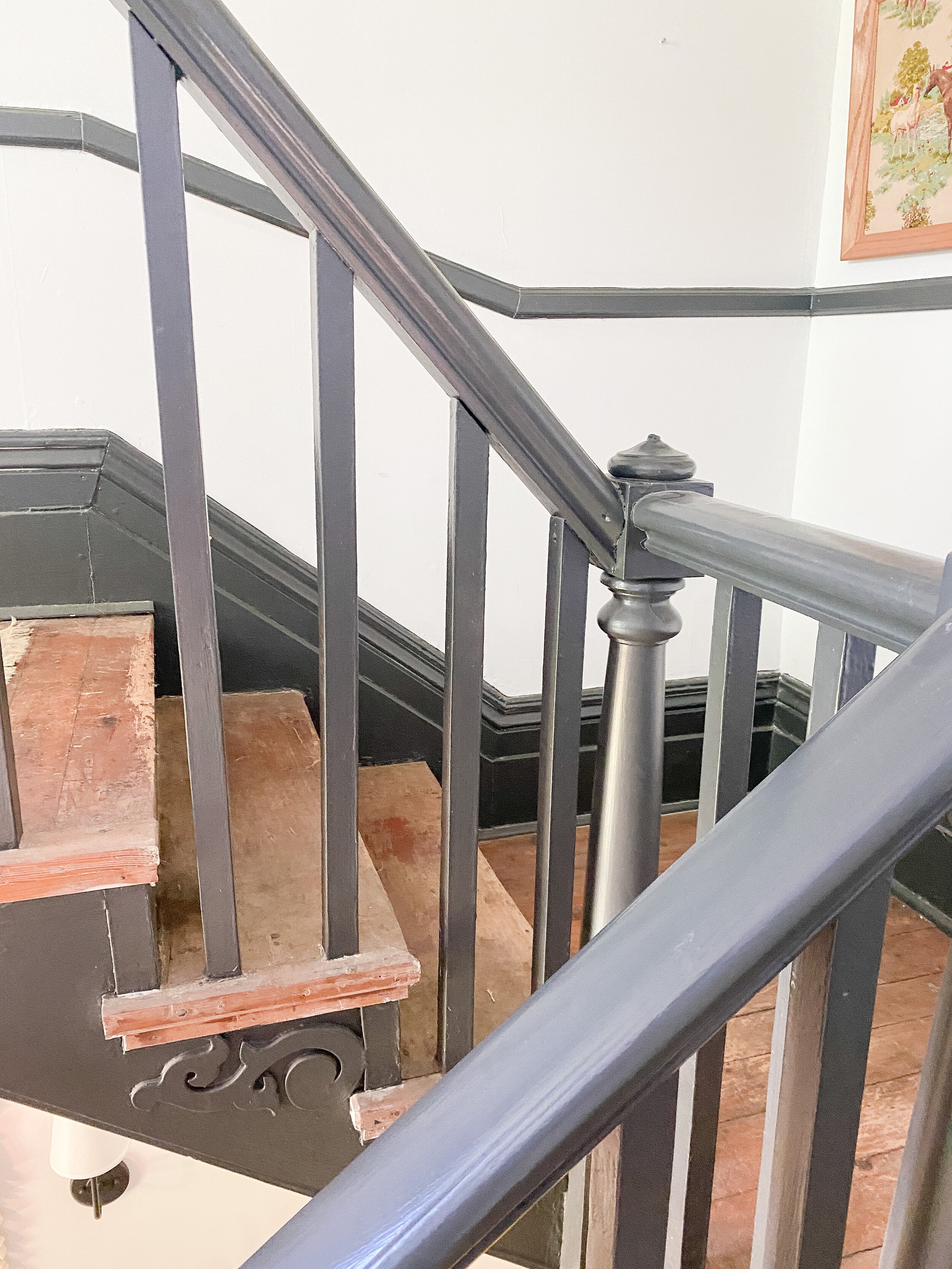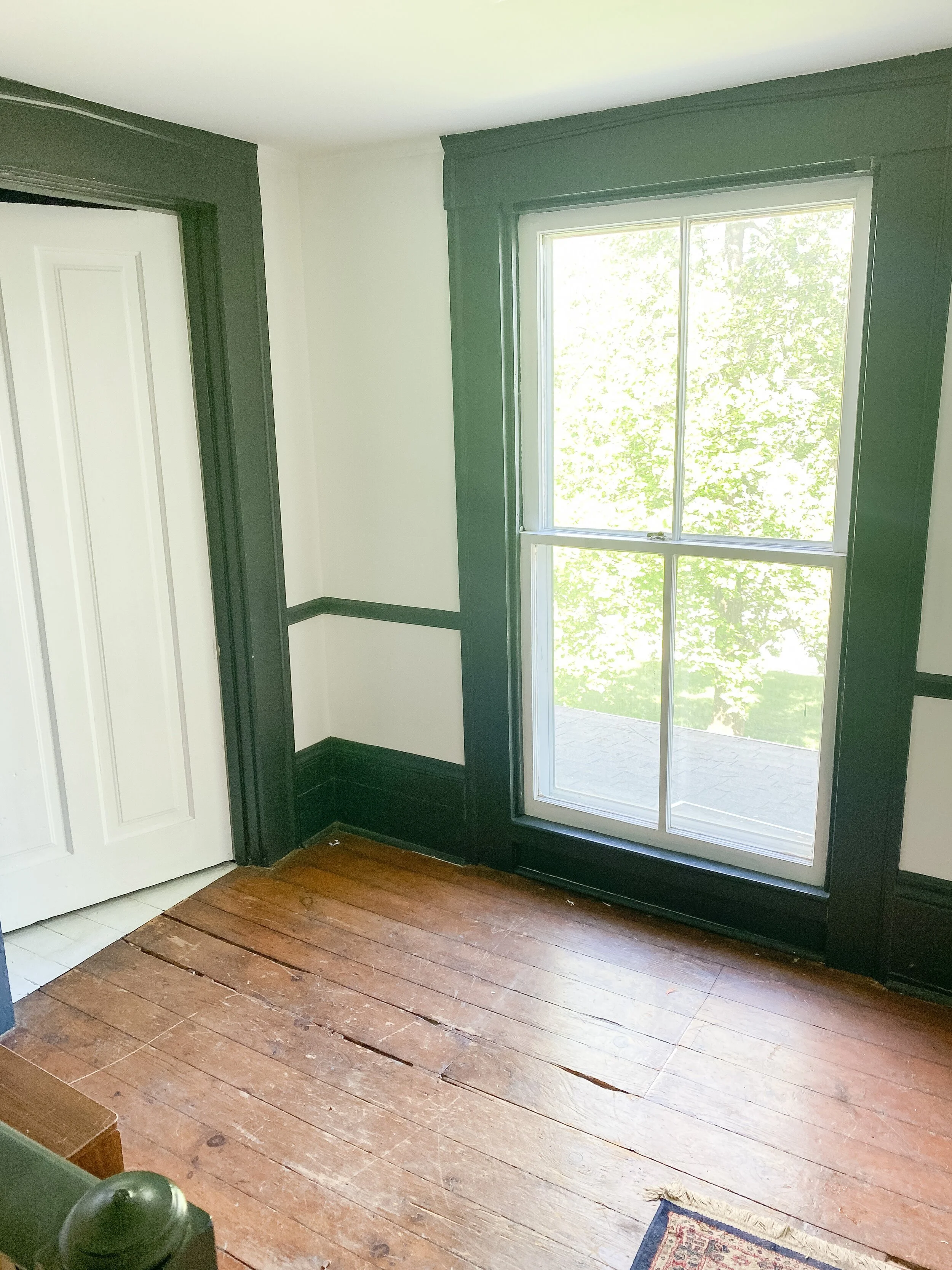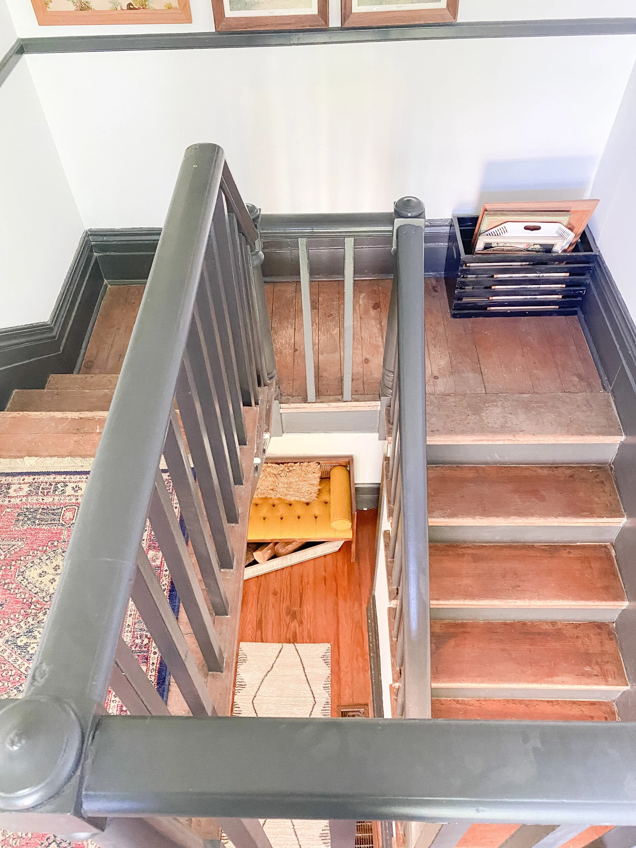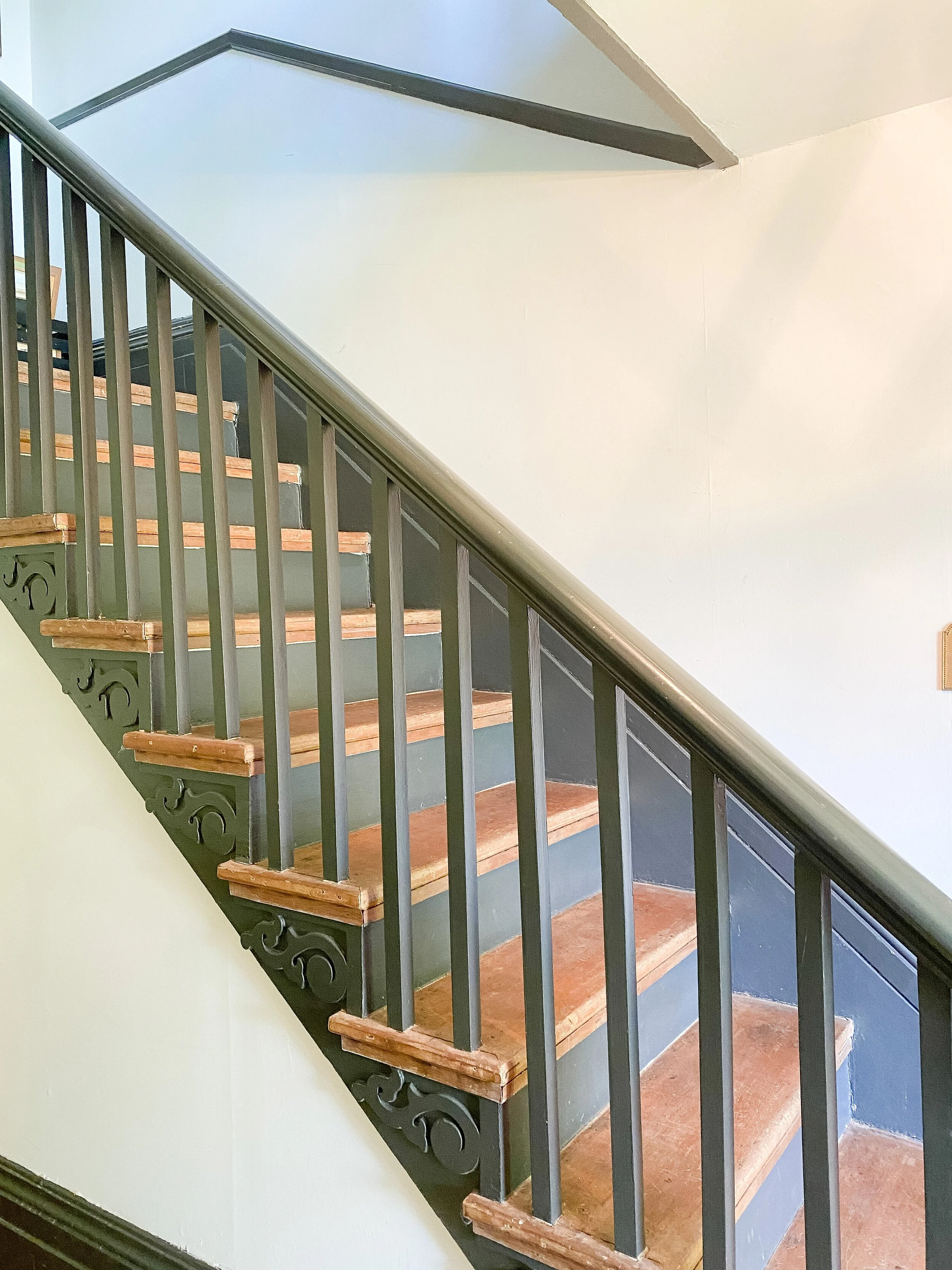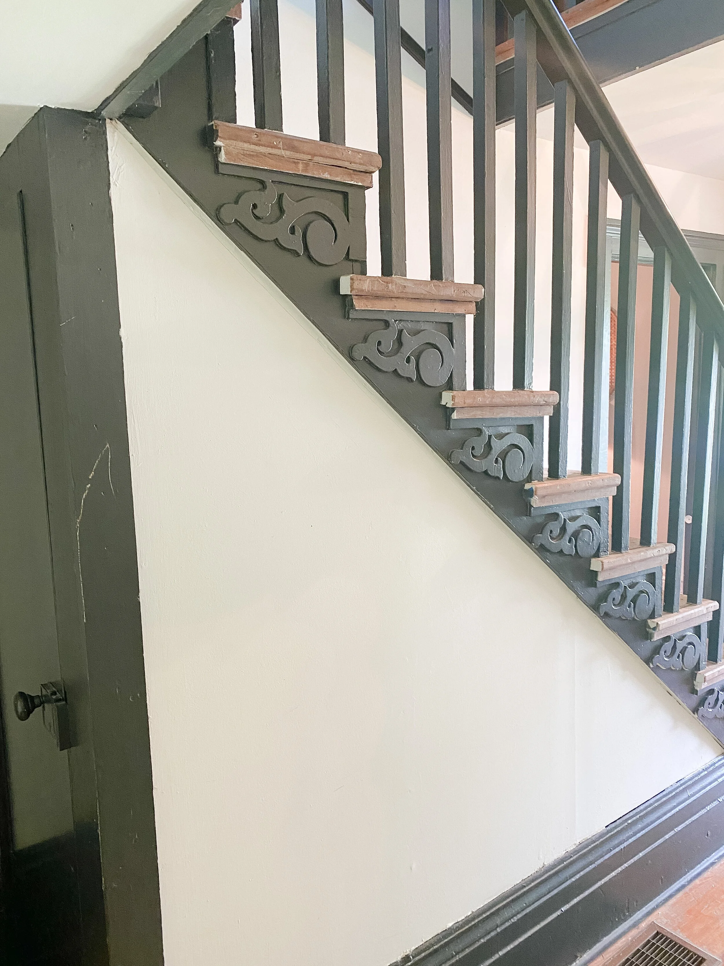 We also have a decent sized little landing at the top of the stairs which has doors into the guest room and John Woodford’s room. We’ve never utilized this space at all and I think it would be so fun and cozy to add a little desk station and/or reading nook up here. There’s so many fun ideas and this space gets such great light, that I am excited to put it to use and make it inviting!