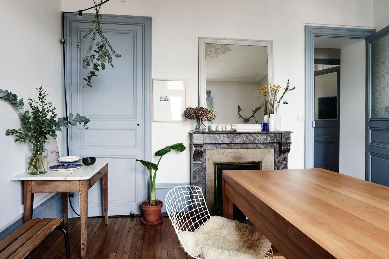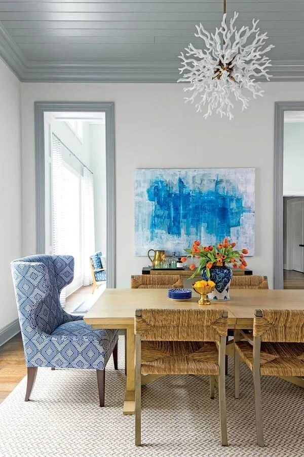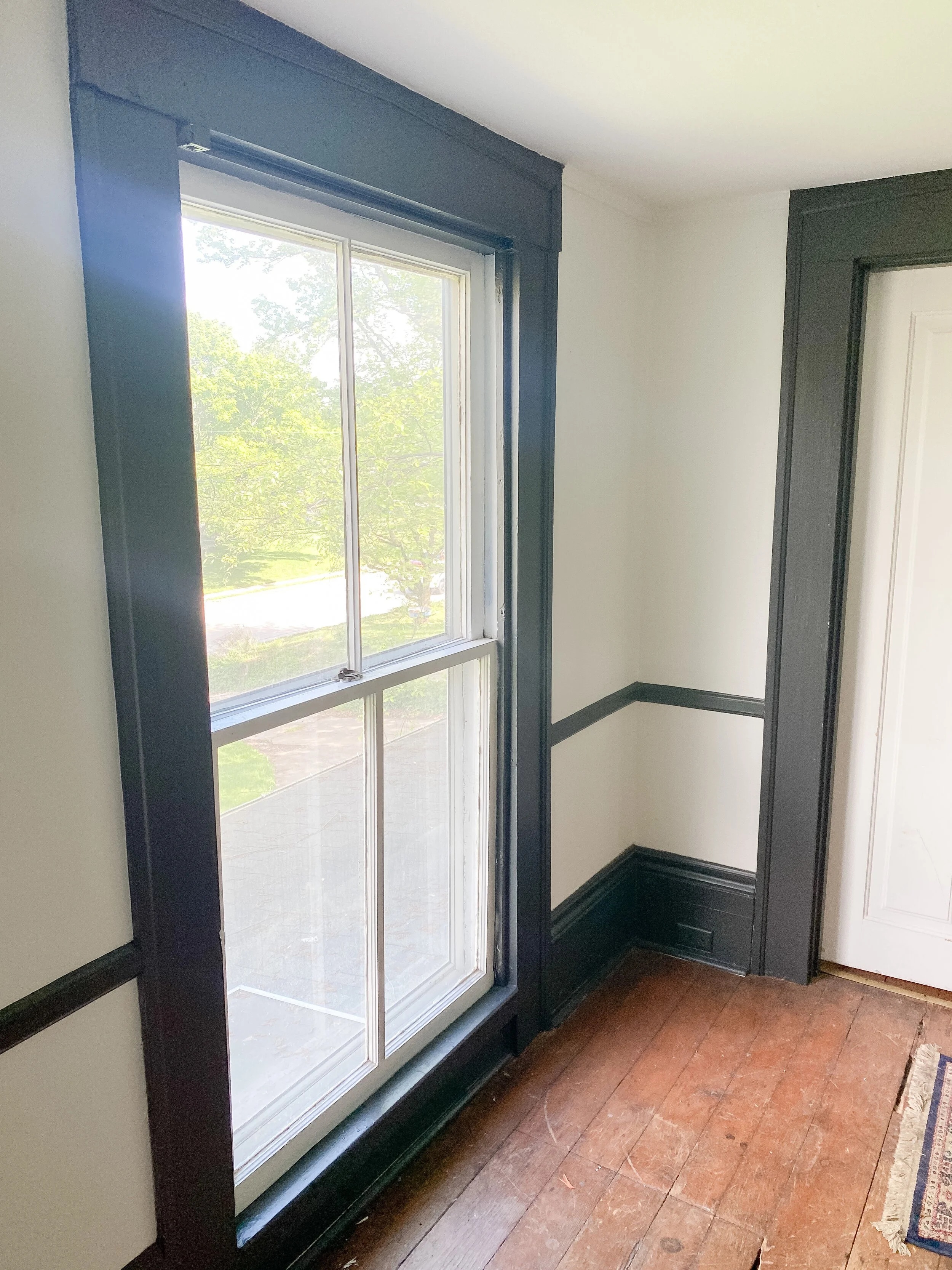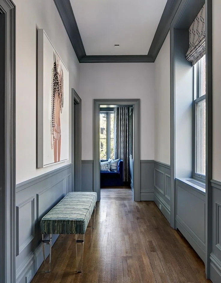 I still love my dark trim in here but if we end up getting to open up the wall to the living room, I’ll need to do something a little different to flow with the living space. I really love the look of pale slate blue trim anyways and was already considering it to update the space. I think this would be the perfect option to flow through both spaces. One of the trickiest parts of this challenge, if we are able to open up the stairway wall, will be deciding where to start/end the trim painting and how to continue it into the living space. Below are some color inspirations that I really like for the space!