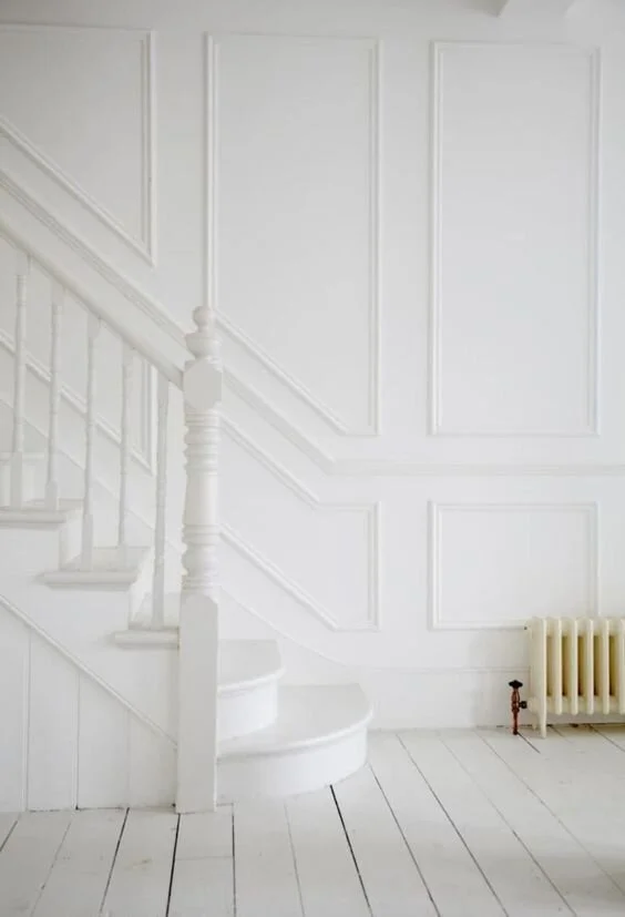 I also love picture molding and think if I don’t do the trellis detail, this would be my next choice for wall trim accent. My thought is to do one type of accent on the left hand wall of the entry and then another on the back walls (landing and lower back wall). I also considered doing the ceiling too so that is still an option.