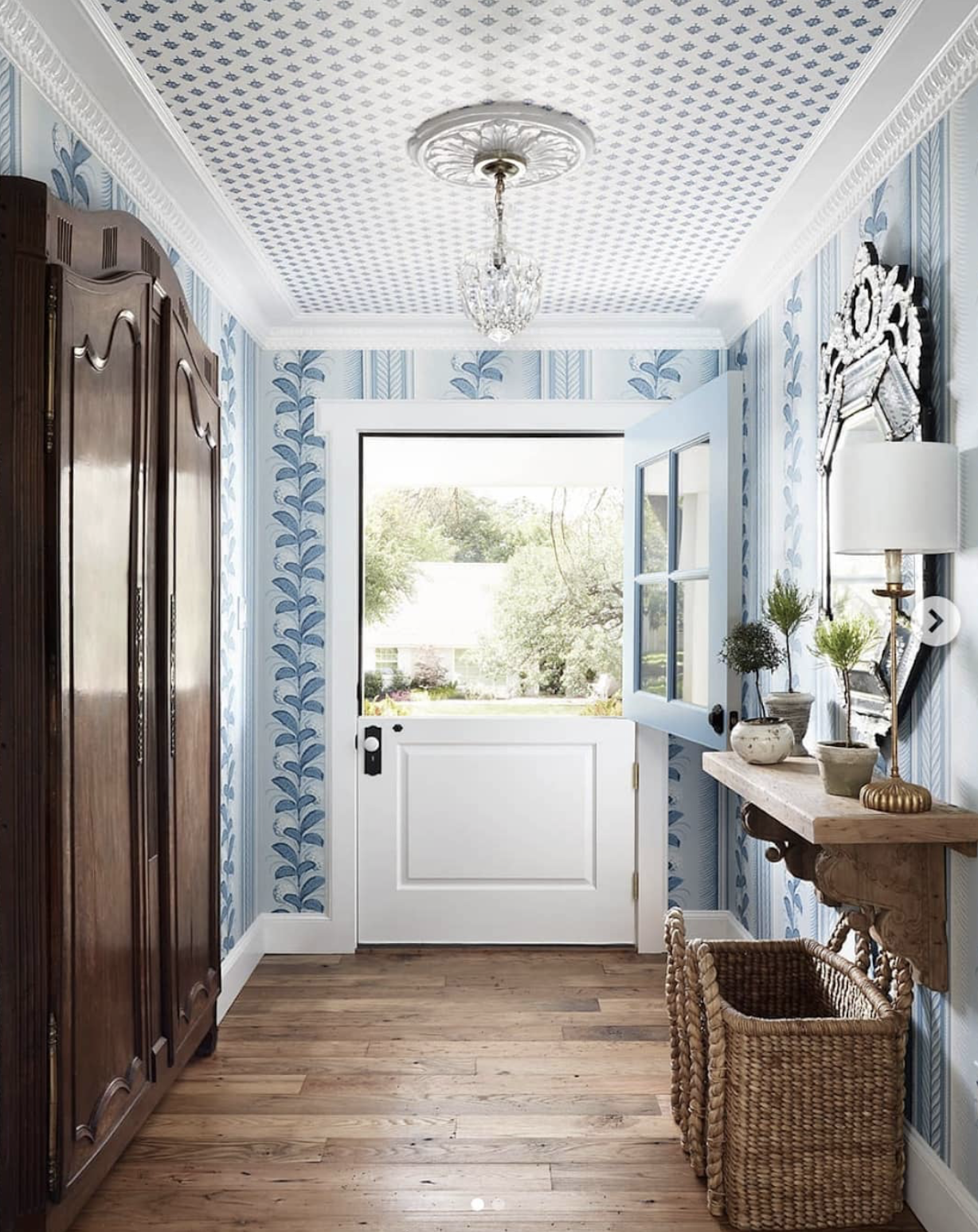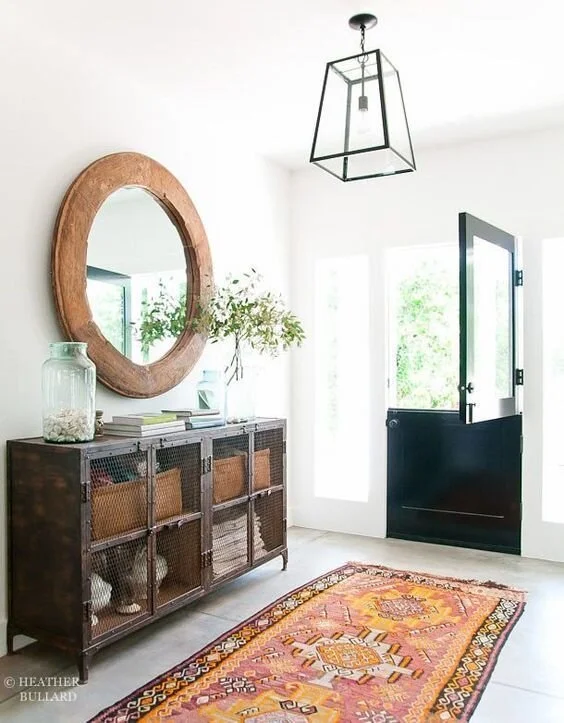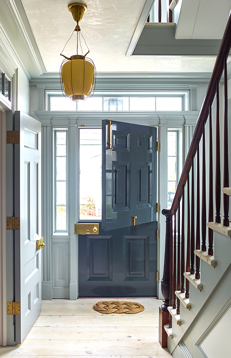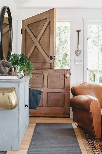 One of the things I’ve always wanted is a dutch door. Ideally I would like allll the dutch doors (on our back entry and front entry!), but I think the main entry is a great place to start as we need more light in here. Ideally I would like a door with at least the top half glass to allow more light in. Dutch doors (and all front doors) are super expensive, so I’m hoping to DIY this with a salvaged old door, adding new hardware, and painting it a pretty color to either match or compliment the trim.