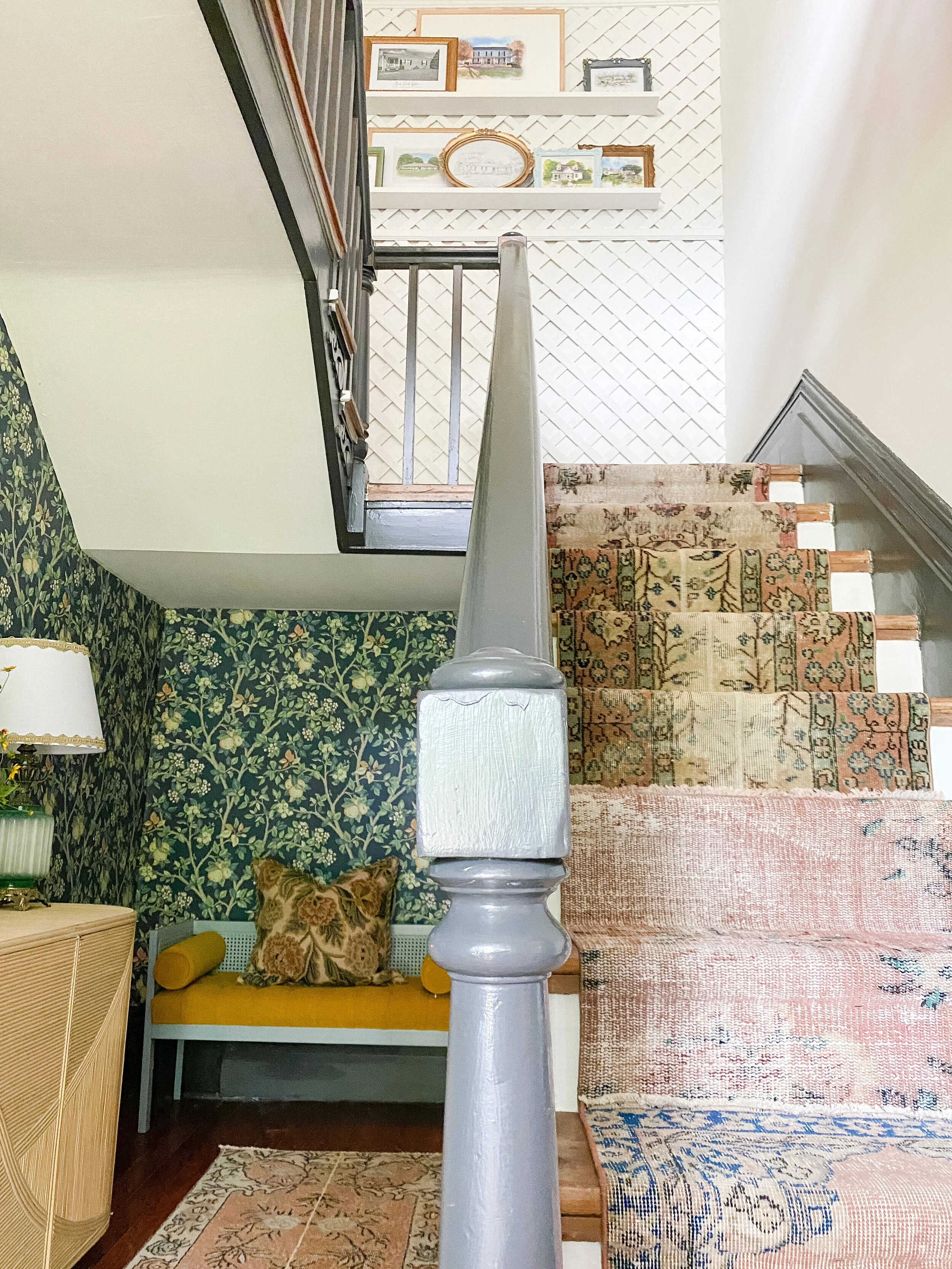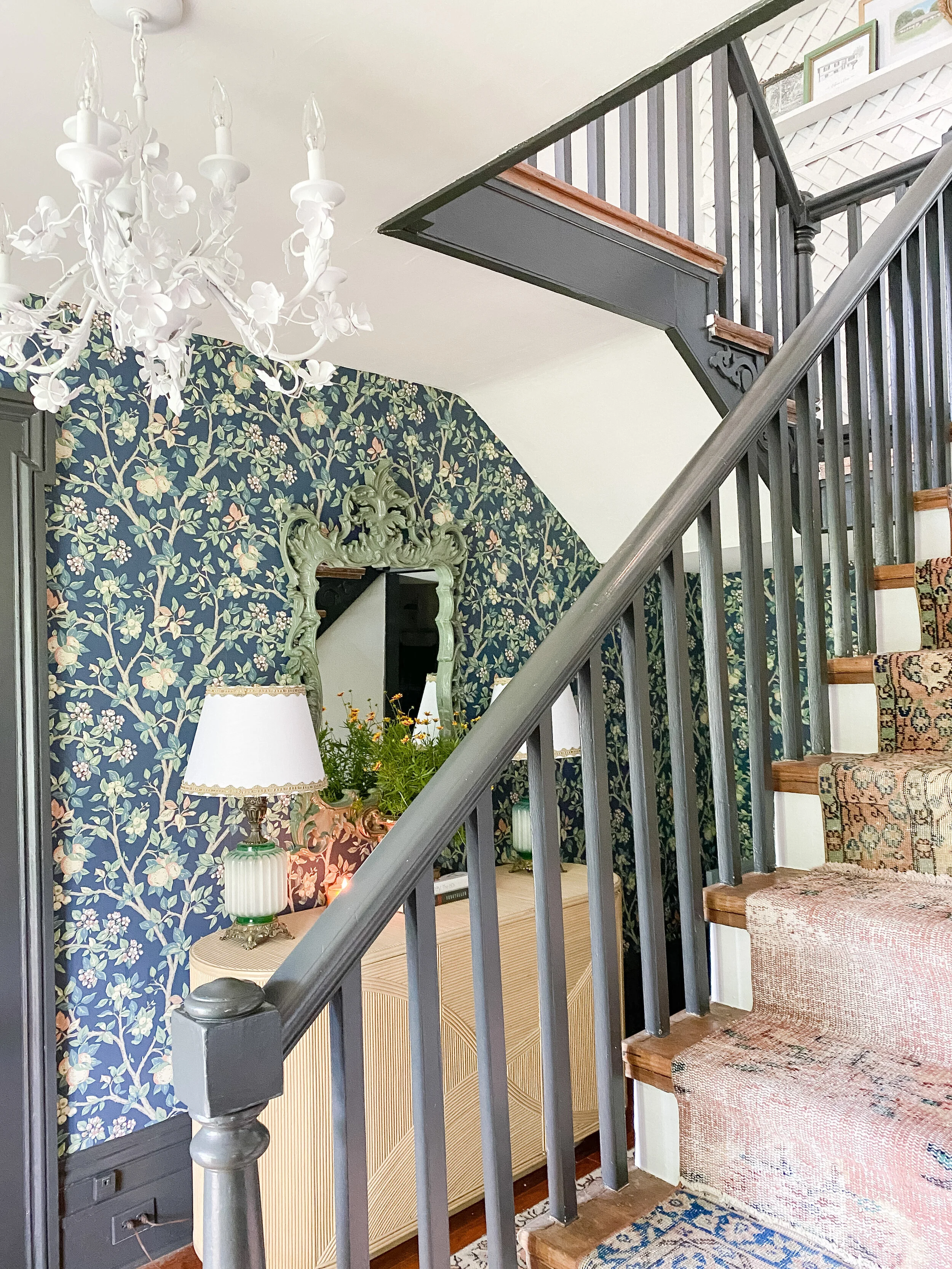There are so many different details and nooks and crannies of this space so I will do a little section on each to share a little bit more about them and the process. I also plan on doing separate posts in more detail about my wallpapering experience, tips, and tricks for that and also my DIY vintage stair runner and the entire process for that as well and all the tools I used!