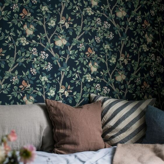 My mom came over and helped me with the wallpaper as she has done quite a bit of wallpapering in all our homes and has a ton of experience. I definitely recommend always having someone to help if you’re wallpapering, as it’s SO much easier with two. This was my first time working with “paste the wall” wallpaper and I seriously never want to do anything else! It is SO much easier to work with than any other wallpaper (and I’ve done them all before!), mostly because it requires very little smoothing after and hardly ever has ripples or bubbles as you’re laying it down. For this method, you simply roll the wall with some wallpaper paste, just like you would if you were painting. Then you apply you wallpaper directly to the wall on top of the paste, smoothing it out all the way down, while also ensuring it lines up perfectly and straight on both sides. Finally I used a razor blade to trim the edges as clean as possible. It is essential to get a very sharp, brand new razor blade with lots of extra blades as you’ll want to change them on every run or two, so you always have the sharpest cuts possible. The only difficult parts are going around things like doorways or corners, which I thankfully only had a few of. We ended up figuring out some tricks for cutting those tricky areas the further along we got, and also did some patching in a few spots by just placing a small scrap of wallpaper behind any small gaps to fill in when needed (you can’t even tell if you match it up well).