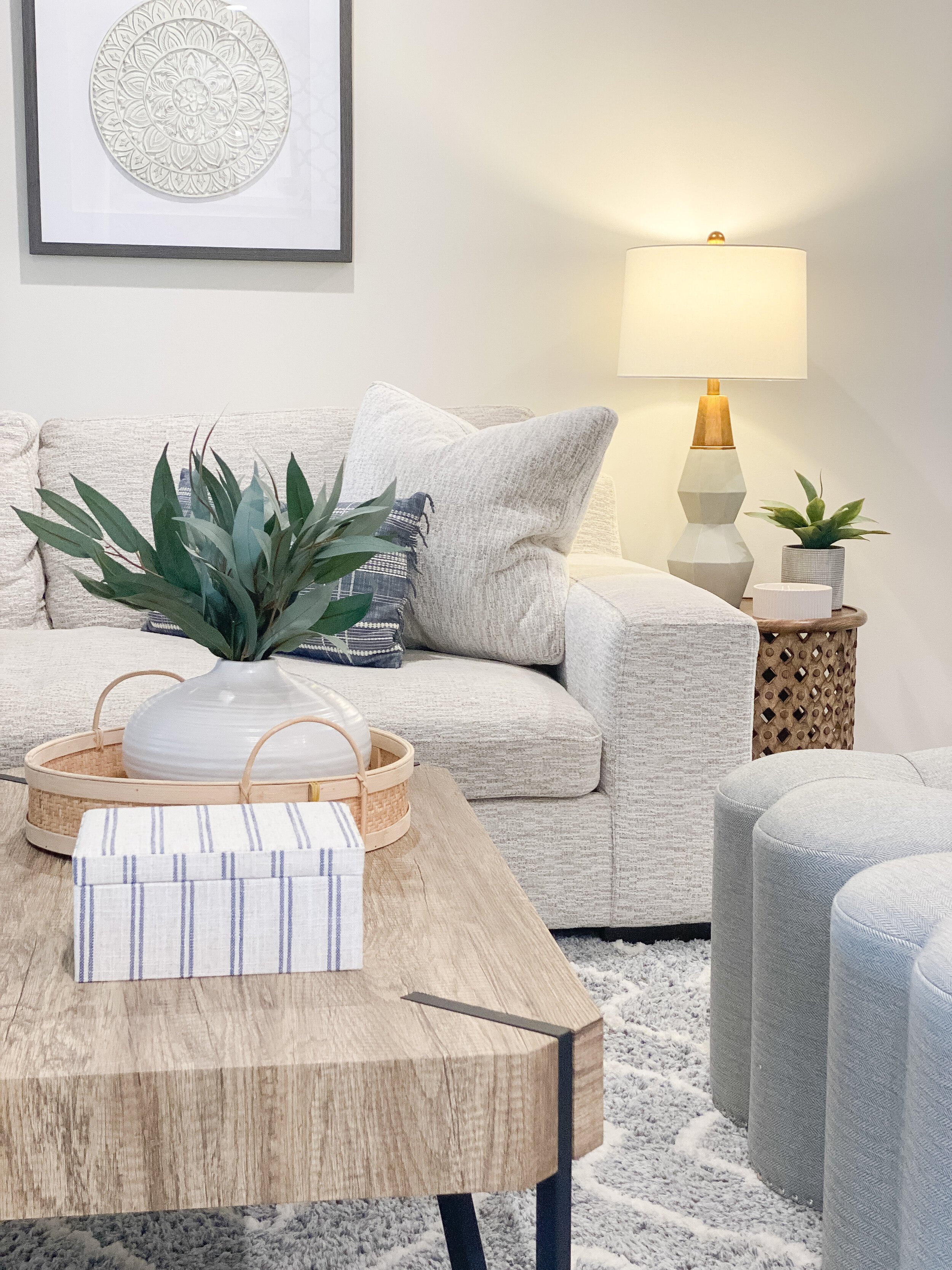 The goal of this space was for everything to be kid and family friendly, comfortable, but still look fresh and pulled-together! We used lots of neutrals in the main pieces, various textures, and some fun pops of color in the accessories throughout. Now this family has a space they love to gather in and can be proud to share with family and friends! You can shop everything we used in this space linked below! If you have any questions about anything else, just ask below in the comments and I would be happy to answer!