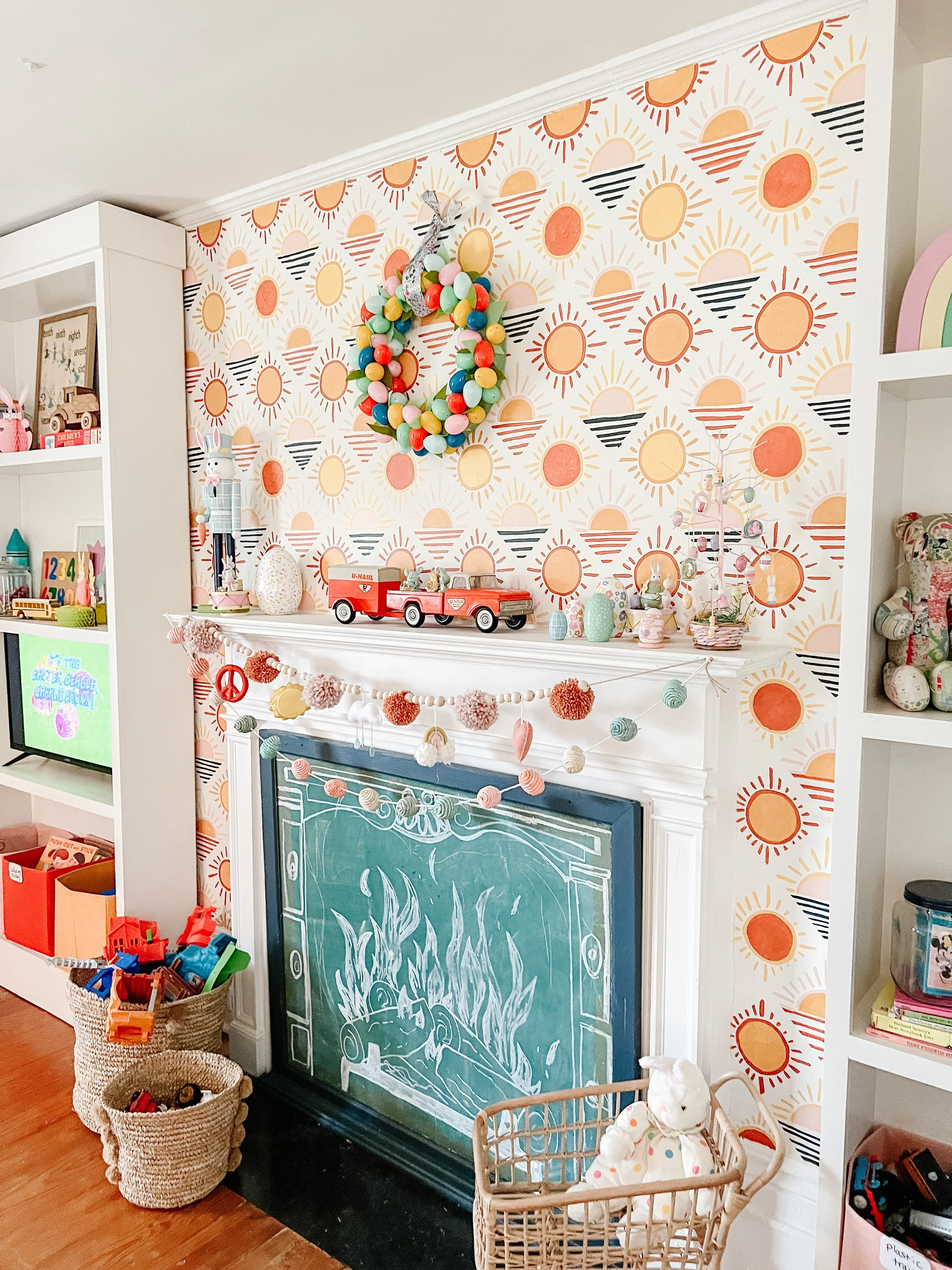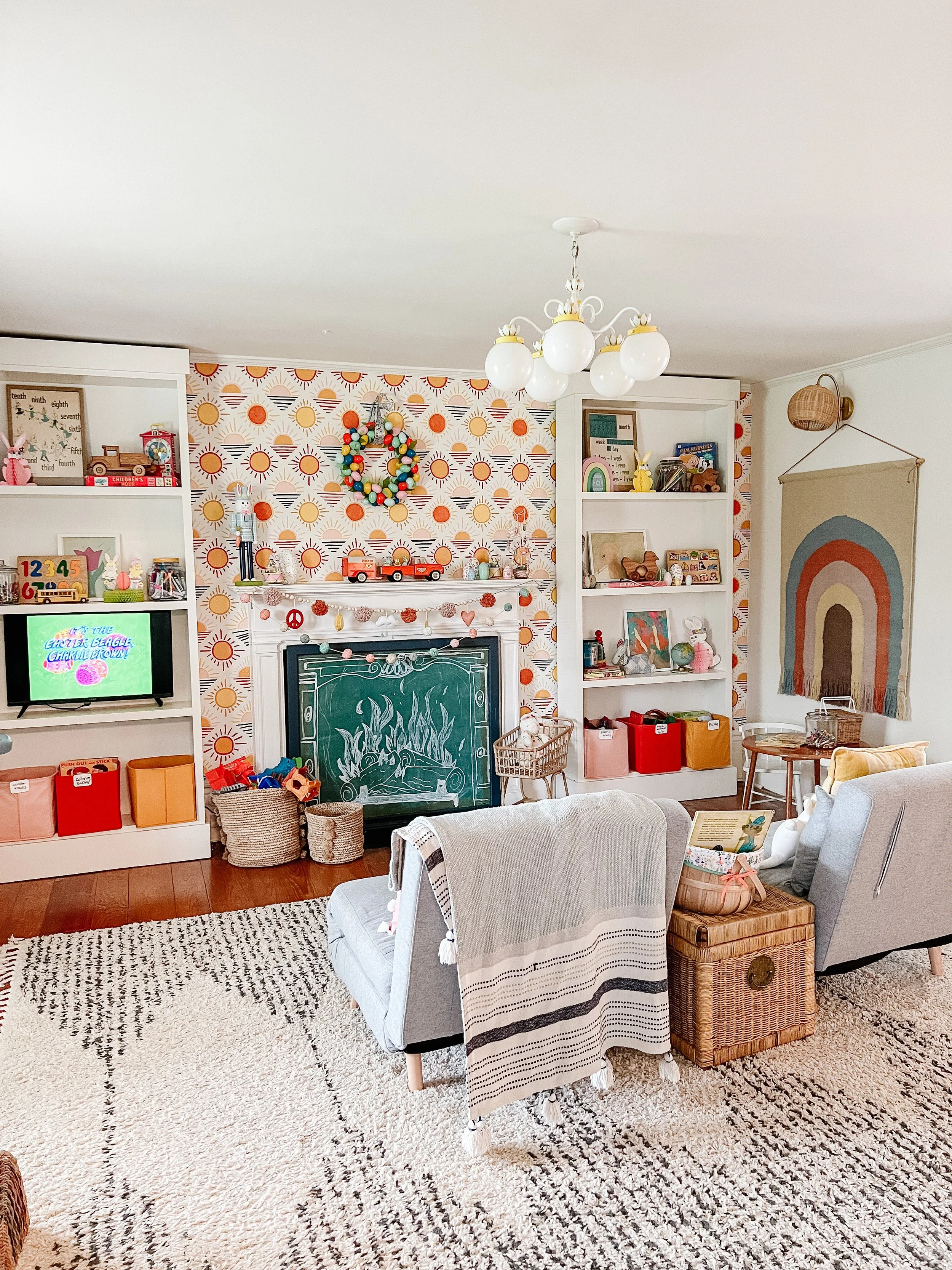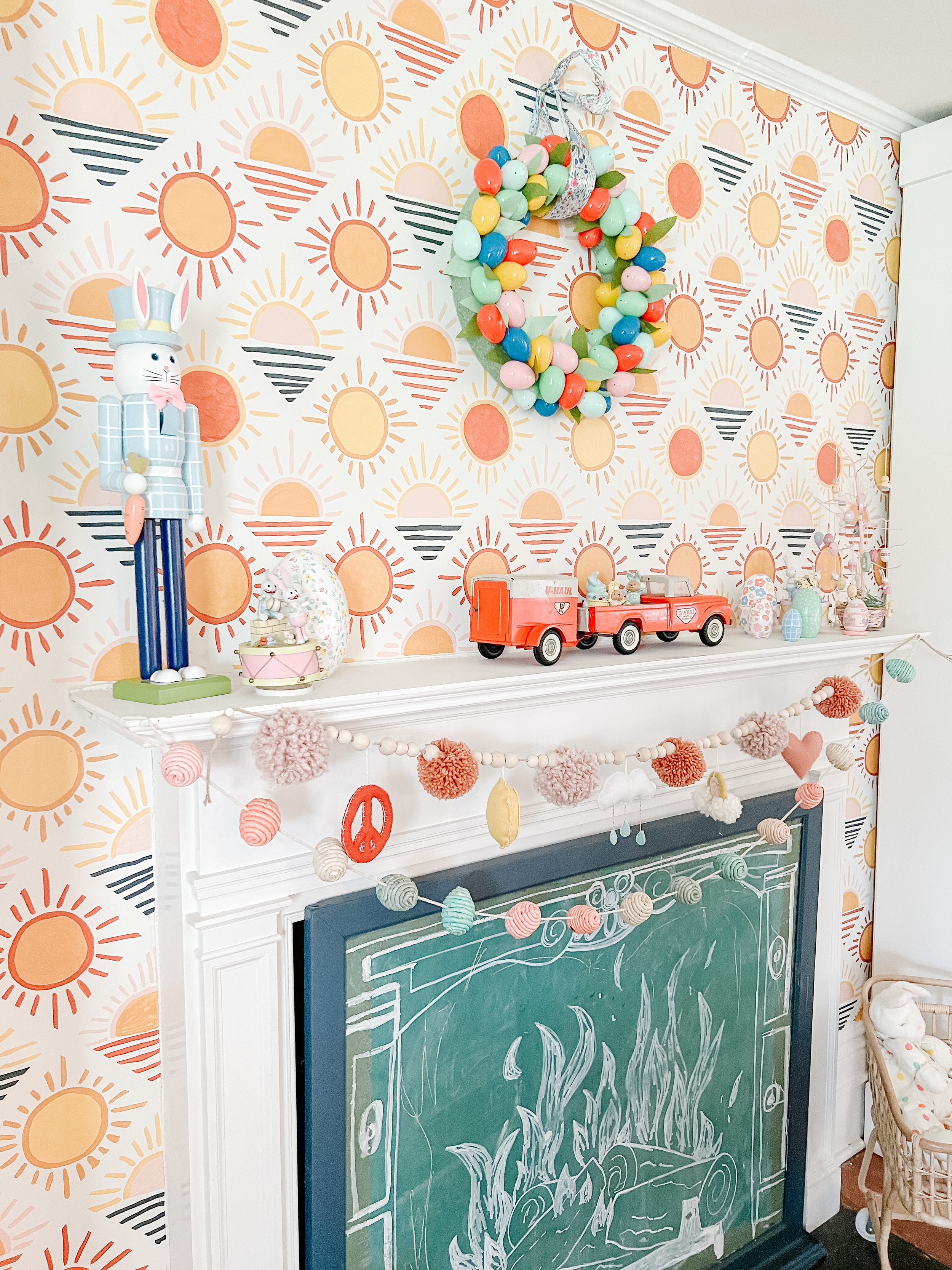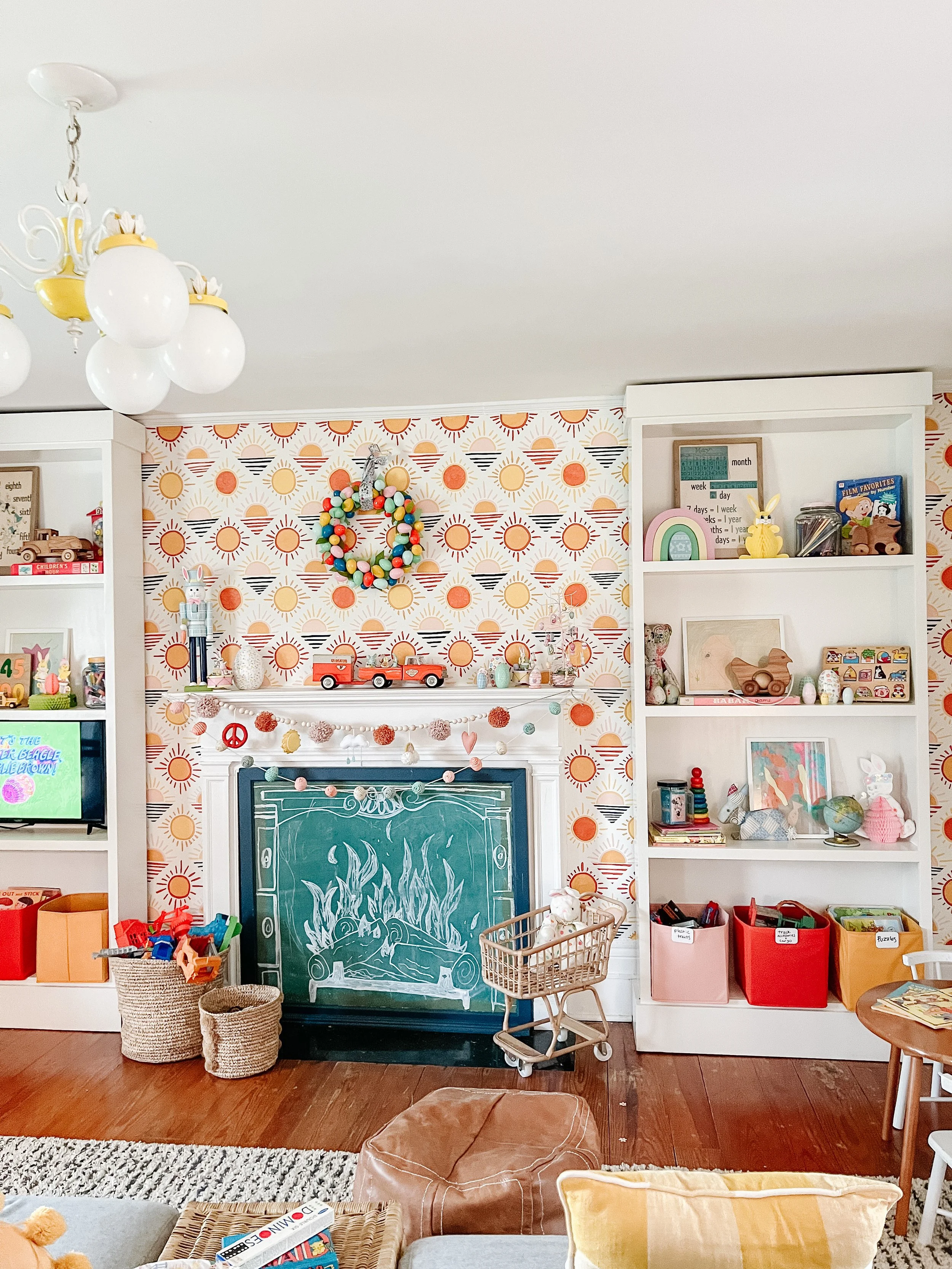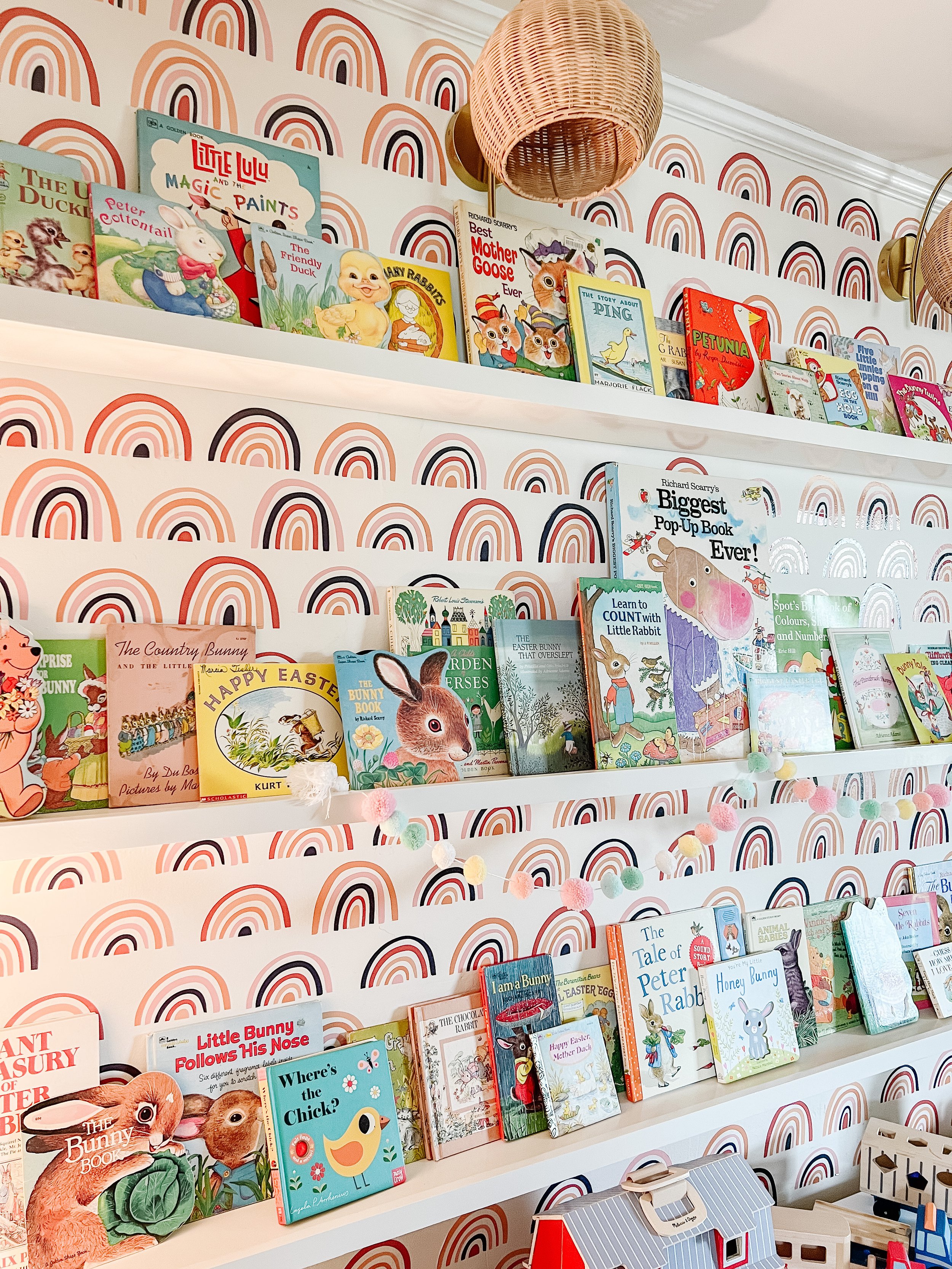 Today I’m sharing a little tour of our Easter playroom with a few fun spring and Easter touches! Decorating for spring is so fun in here especially since the colors match up so perfectly! I put out a few vintage Easter decorations that I’ve had since I was little and I also added all our Easter and spring books to the book wall. You can find all my favorite pieces linked for you to shop below!
