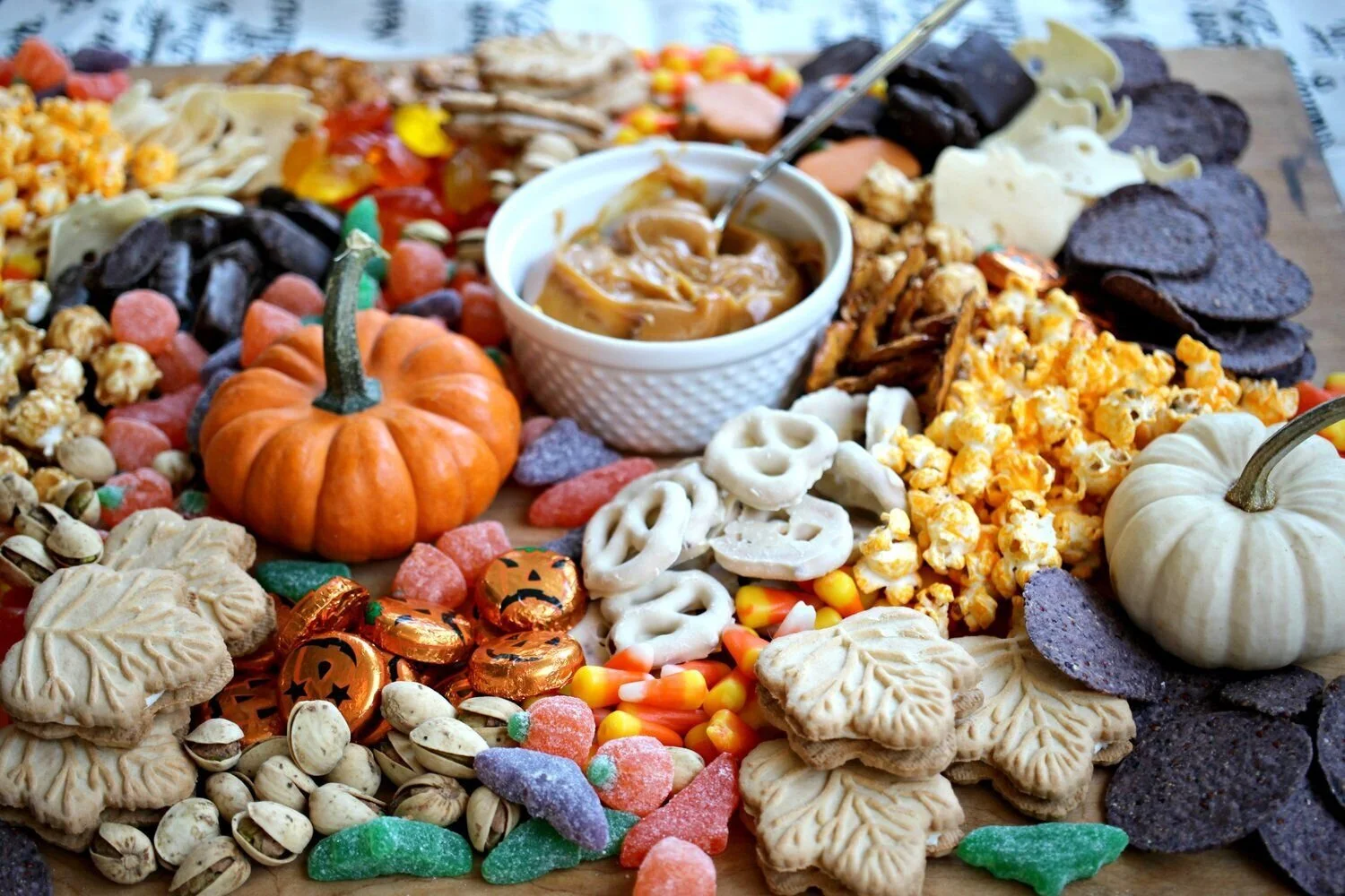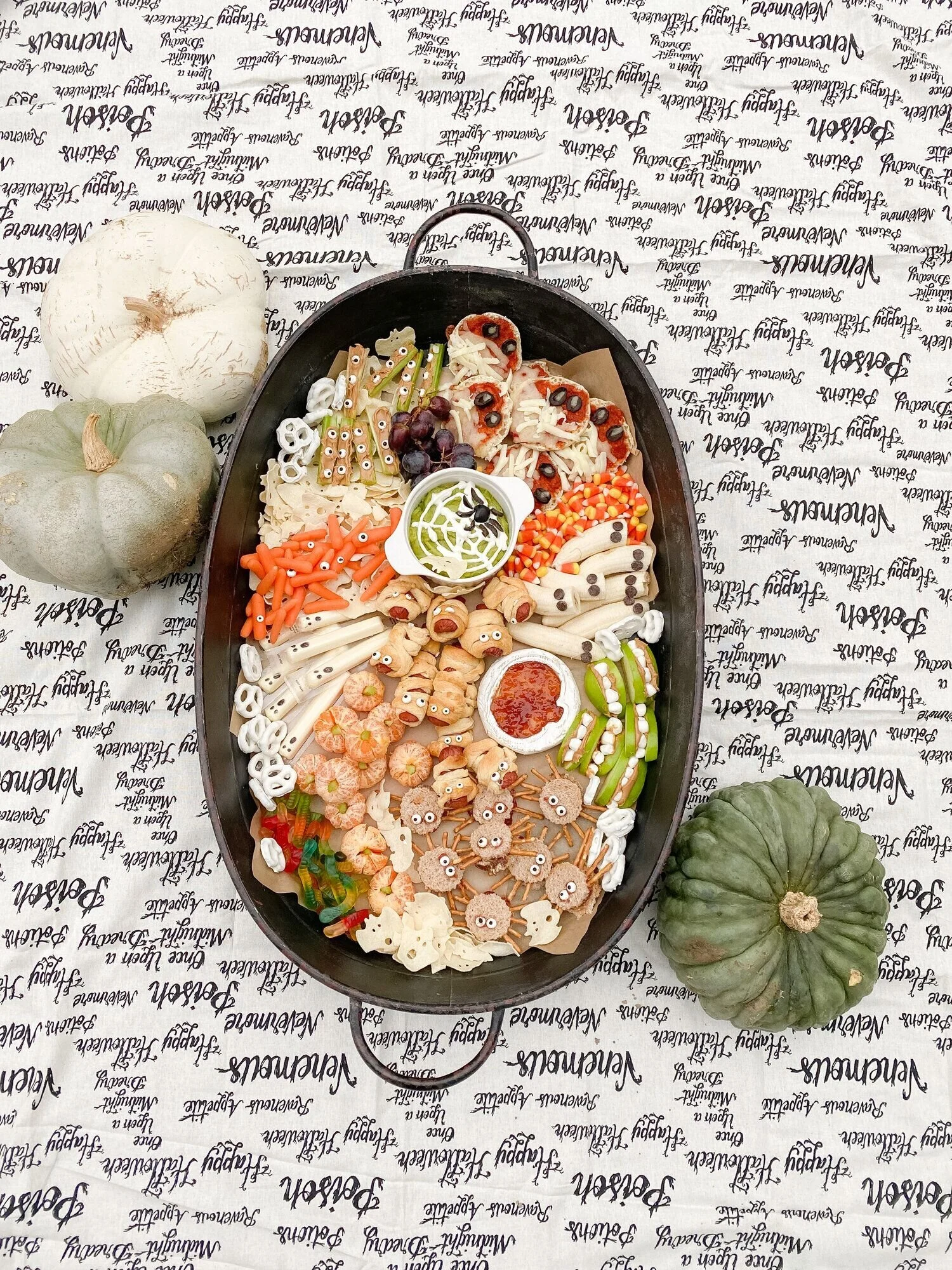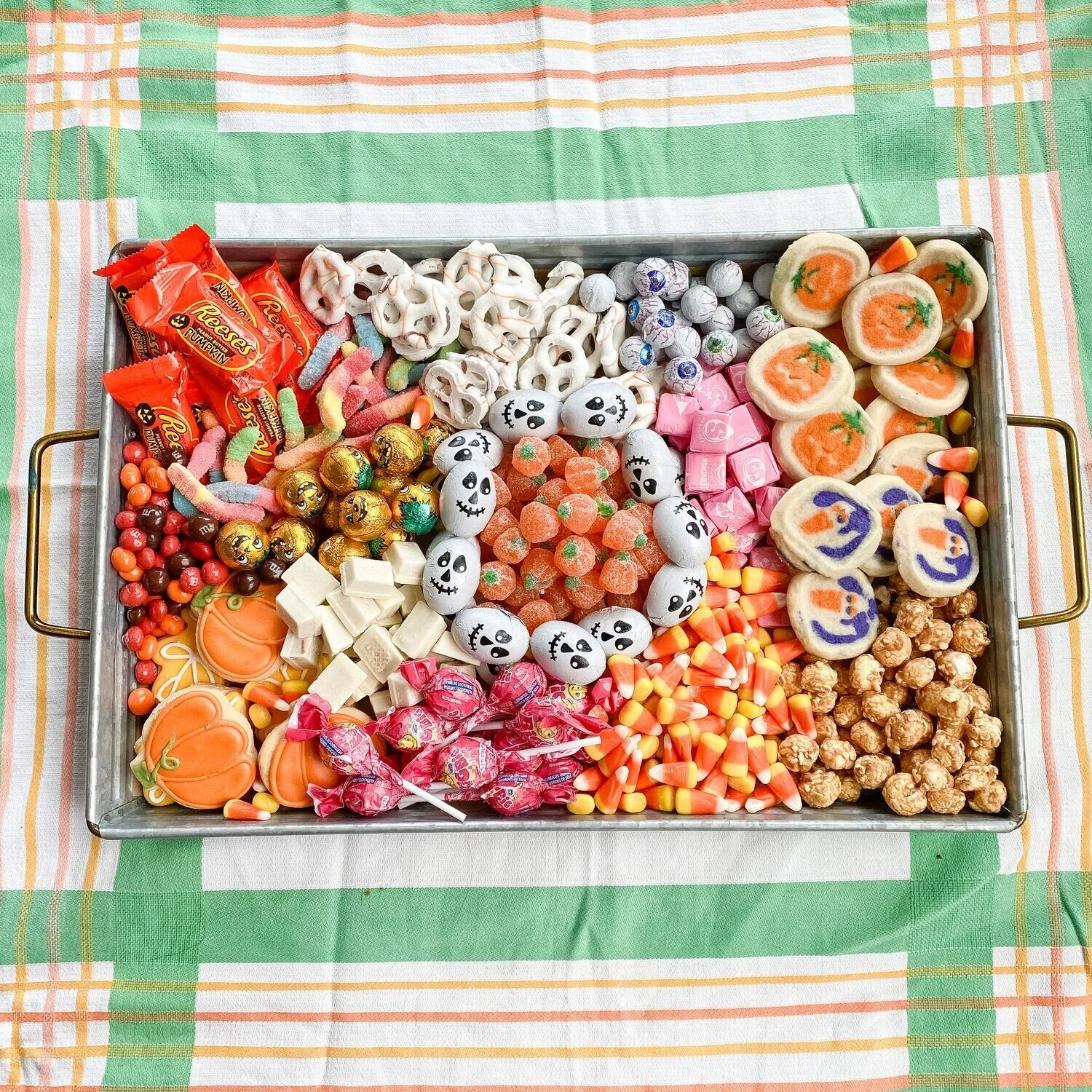 The formula for creating this is easy- just gather up all you favorite candy and sweet and salty snacks for Halloween and throw them together on one giant board! I got the bulk of my items from Trader Joe’s but also got many of the cute candies from Williams Sonoma. Find the full recipe HERE!