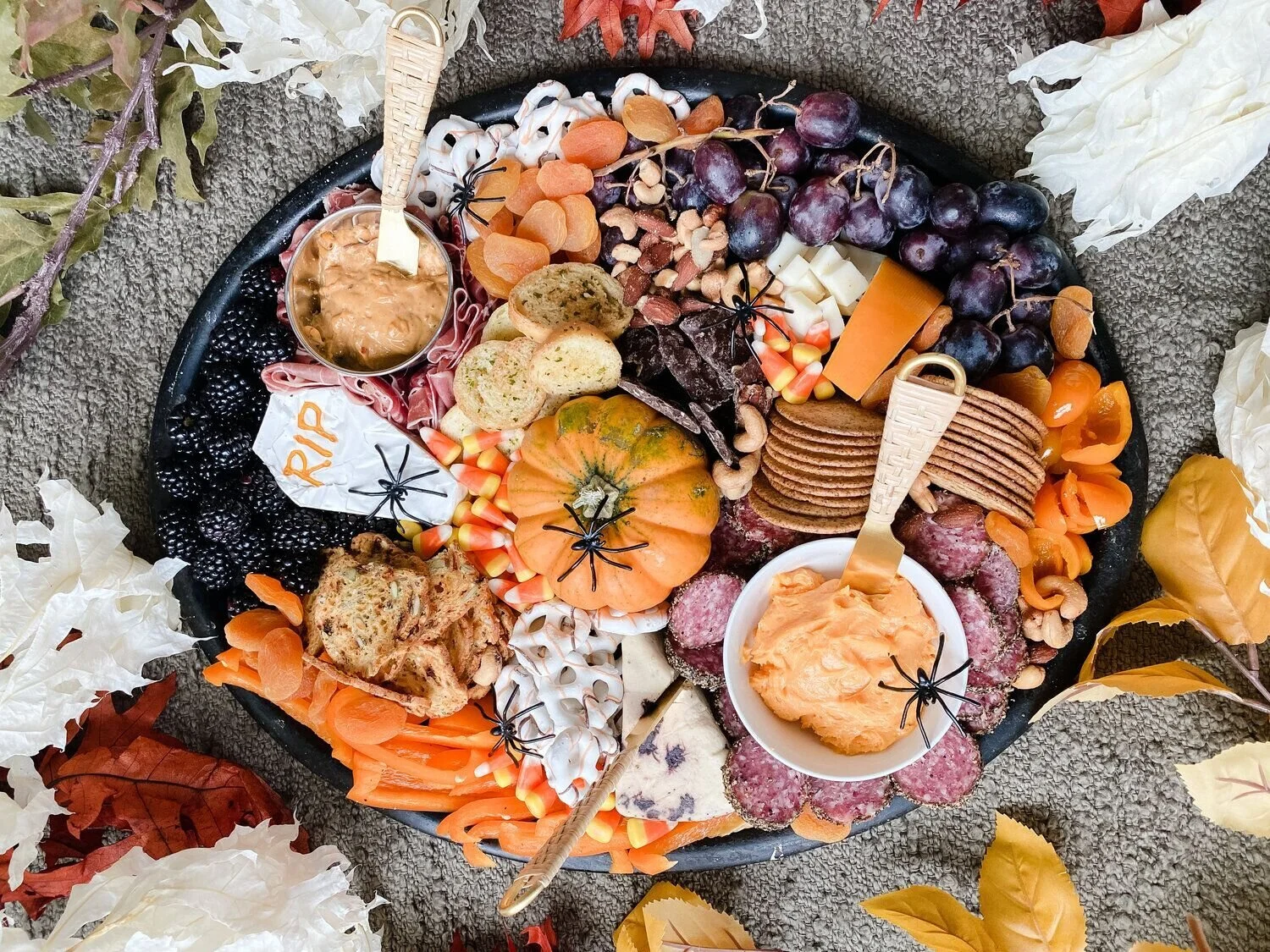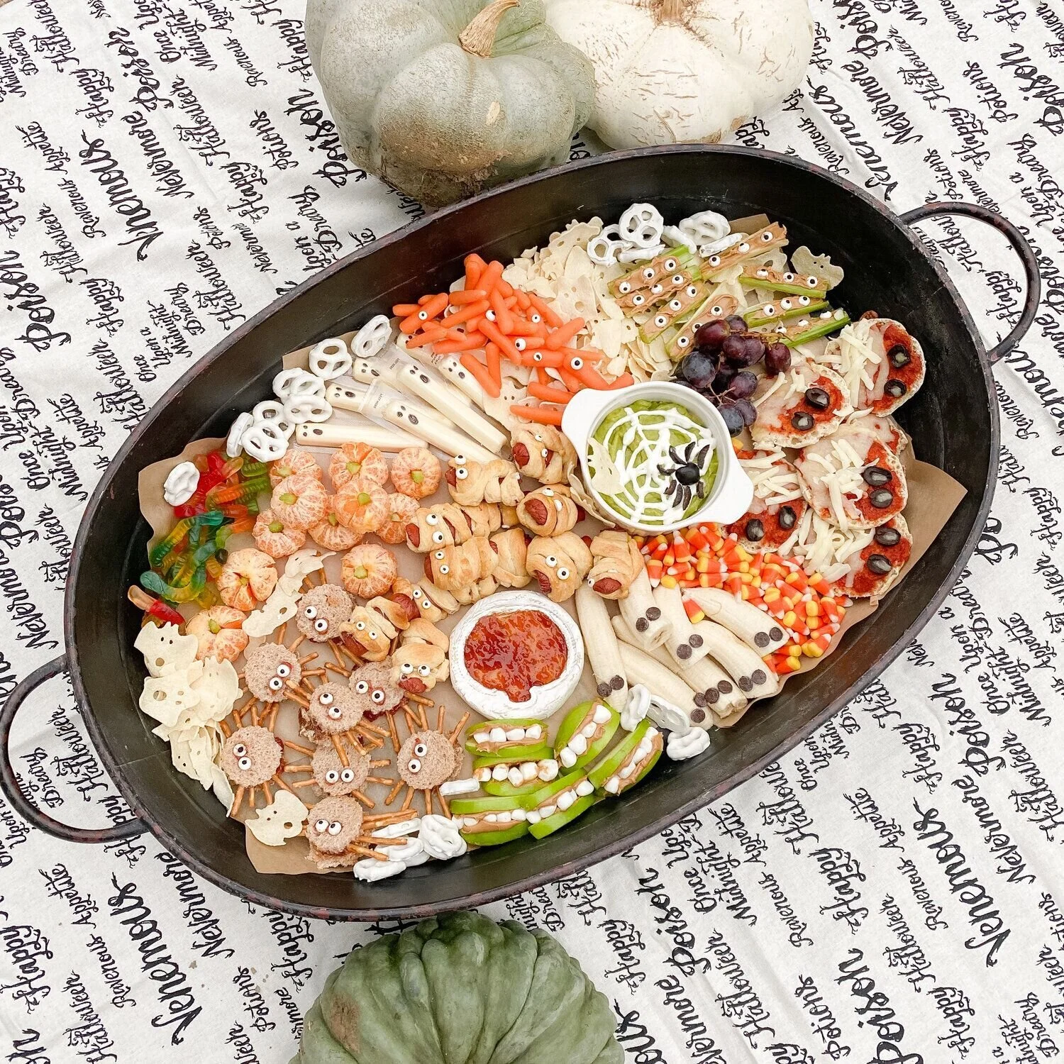 It is so tasty + festive for your Halloween party or activities and has a great mix of sweet, salty, and savory! Everything used can be found at Kroger on this one, but feel free to substitute items and make it your own! You can find the full list of ingredients and instructions for assembling HERE!