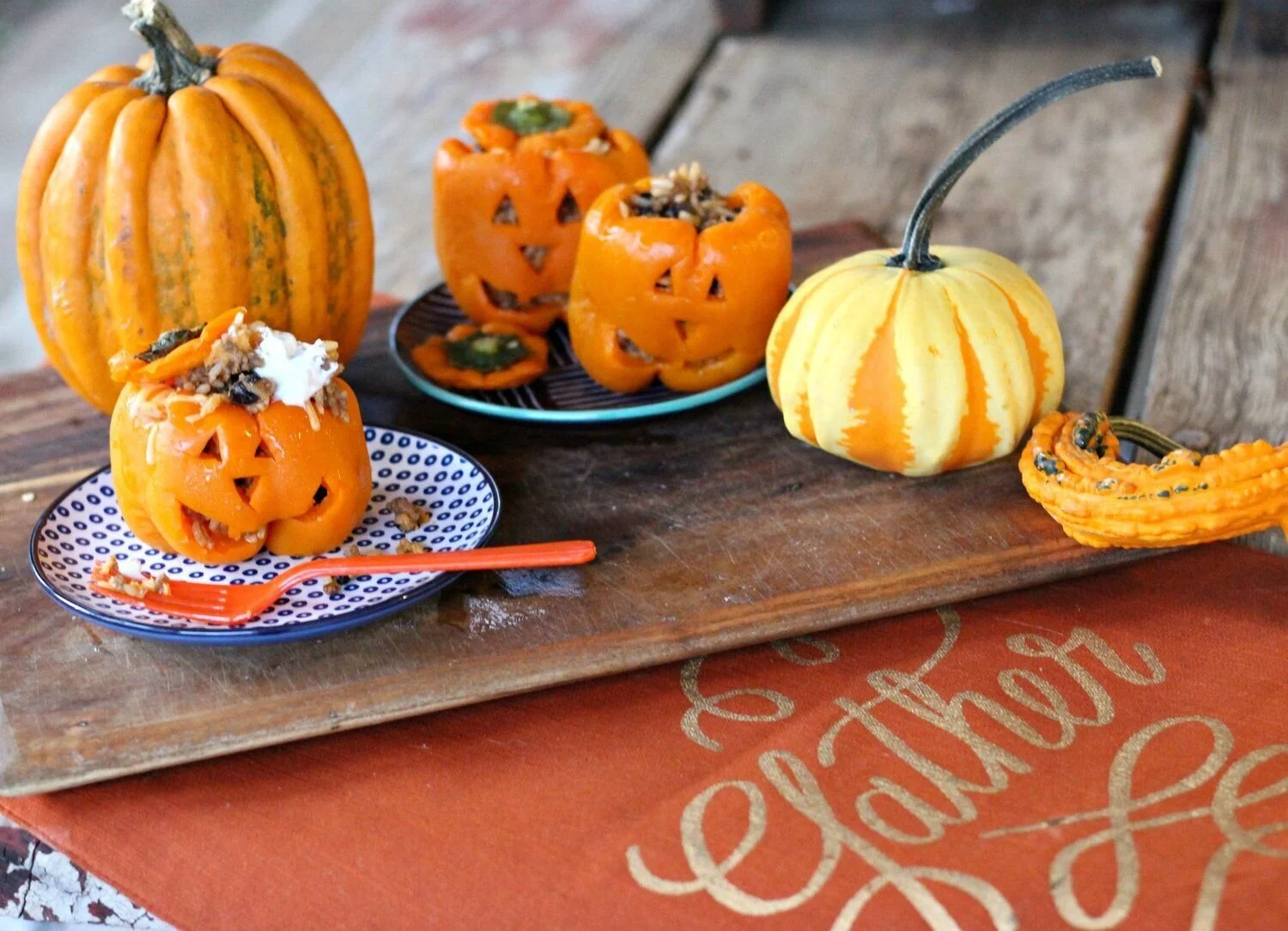 Almost too cute to eat! These Halloween stuffed peppers are such a fun + easy recipe to make leading up to Halloween or for Halloween dinner. Each pepper is stuffed with black beans, ground beef, rice, and the taco toppings of your choice! I topped mine with pico, shredded cheese, and sour cream! Find the full recipe HERE!