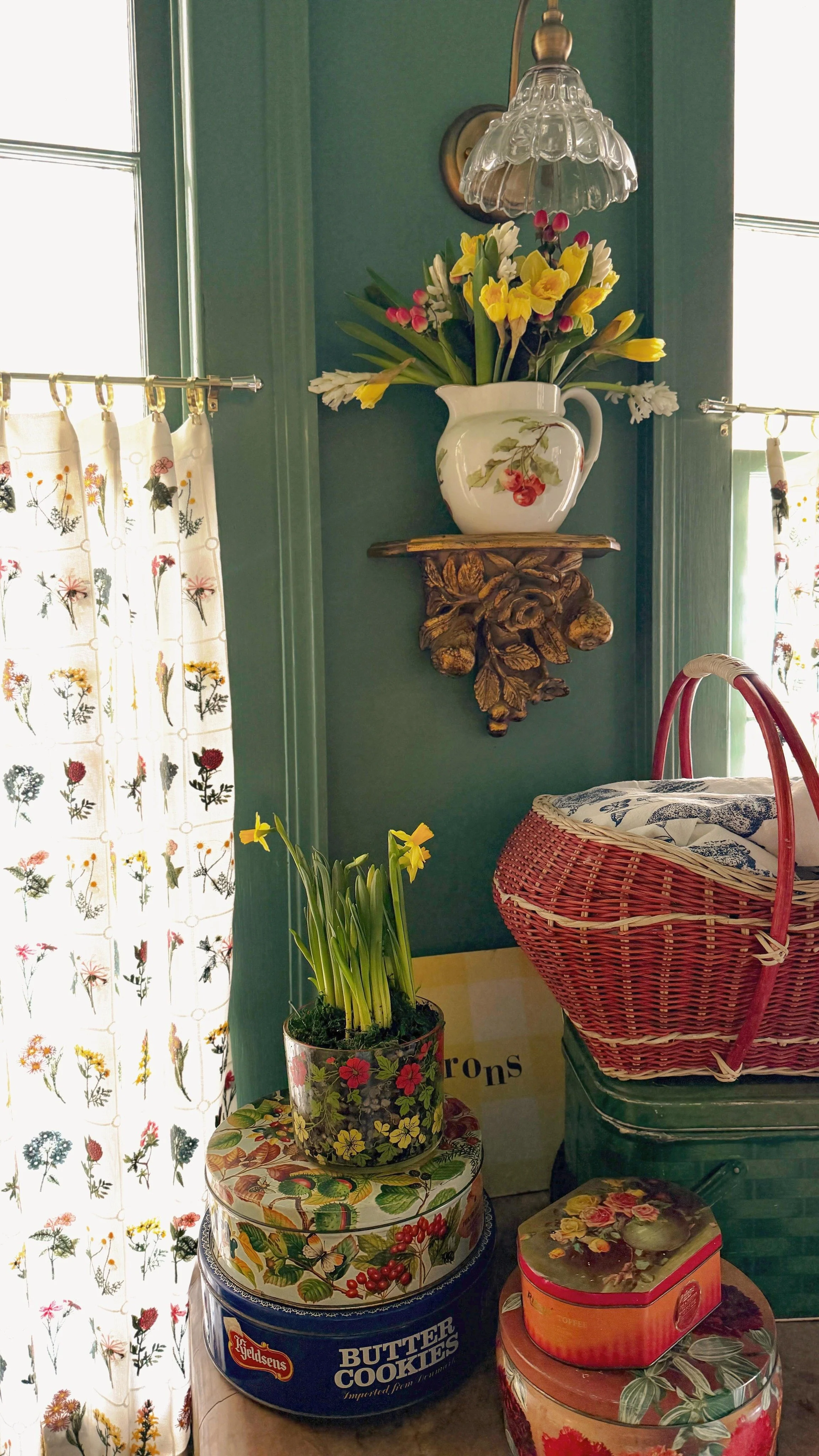 I started by creating the base with a couple of different large boards, a couple of cake plates/tiers for height, and some produce baskets for bread/crackers. I put napkins in these before adding the bread and crackers on top.