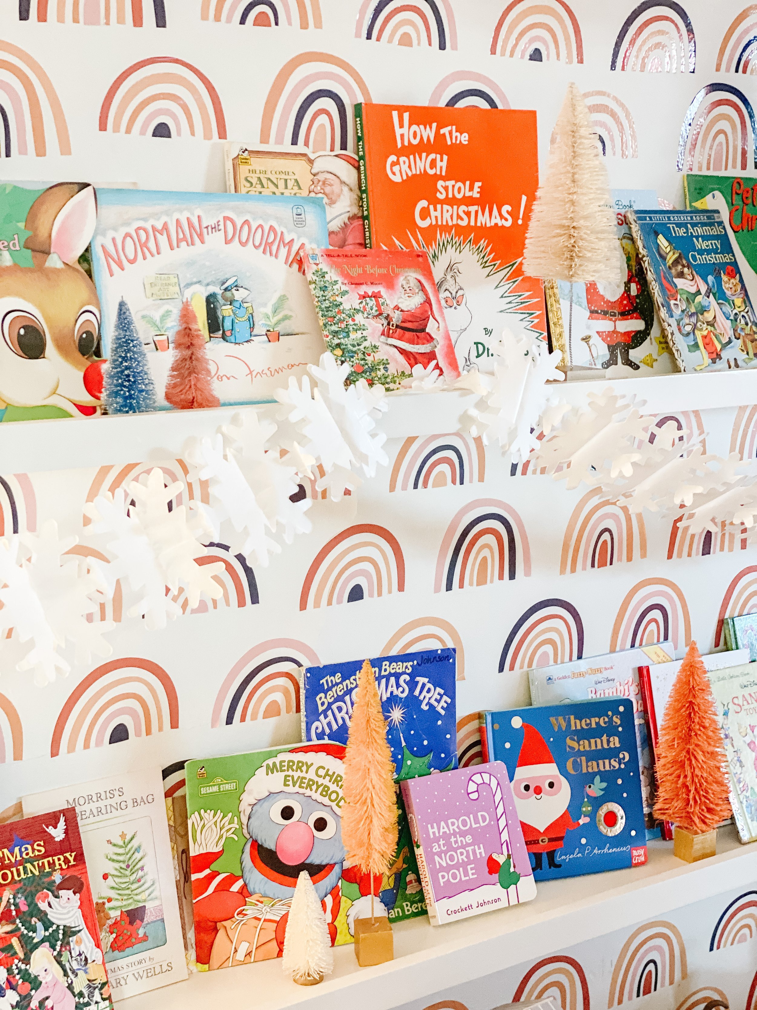 Next up on my holiday home tour is John Woodford’s playroom! If you’ve been around for this room’s transformation you know just how colorFULL and fun this room is! I wanted to bring that same cheer this holiday season! This space is very Merry & BRIGHT and contains lots of fun vintage and DIY pieces including my DIY Christmas village makeover! Below I’ll link everything I used to deck out this space and similar items so you can shop this space!