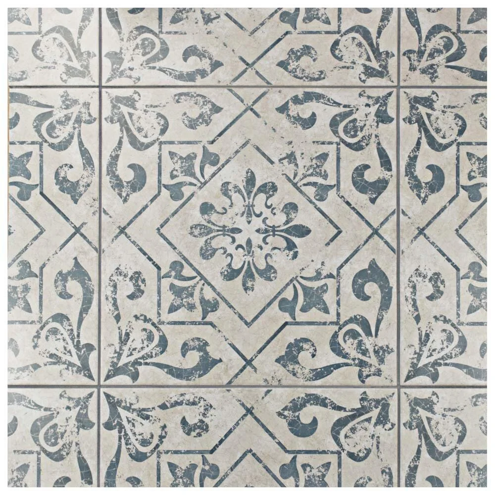 Since the coffee shop is a smaller space, I instantly knew I wanted a fun printed ceramic tile for the floor. My overall vision for the decor is old-world European with a modern twist, so I loved the printed pale blue tile floors I was finding. They remind me of something from a turn of the century Parisienne bakery or cafe, which is exactly the look I want to emulate. Ultimately I chose the style below based on the size of the print, color, and distressed look. Everything else in the coffee shop will center around this printed tile.