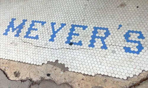 Another flooring element will be in the entrance of the coffee shop, where we are hoping to do a coordinating but smaller penny tile that we can use to spell "Coffee" on the threshold just inside the door (see examples below). I think this will be a super fun and unique element and we hope to even continue this style of tile to the outside entrance as well.