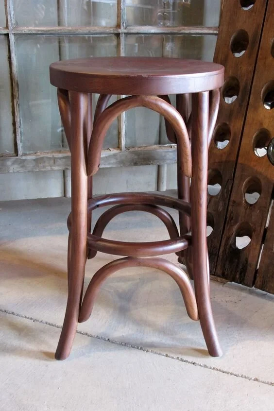Our shop is very cozy, so we don't need a ton of seating but I also want to maximize the space we do have. We will have mounted window bars with barstools on the large open windows like below. We will probably even have similar window seating outside too, as we have a lot of outdoor space to work with! The bar tops will have a simple reclaimed wood look and I like the classic wooden brasserie-style stool to go with them (see below).
