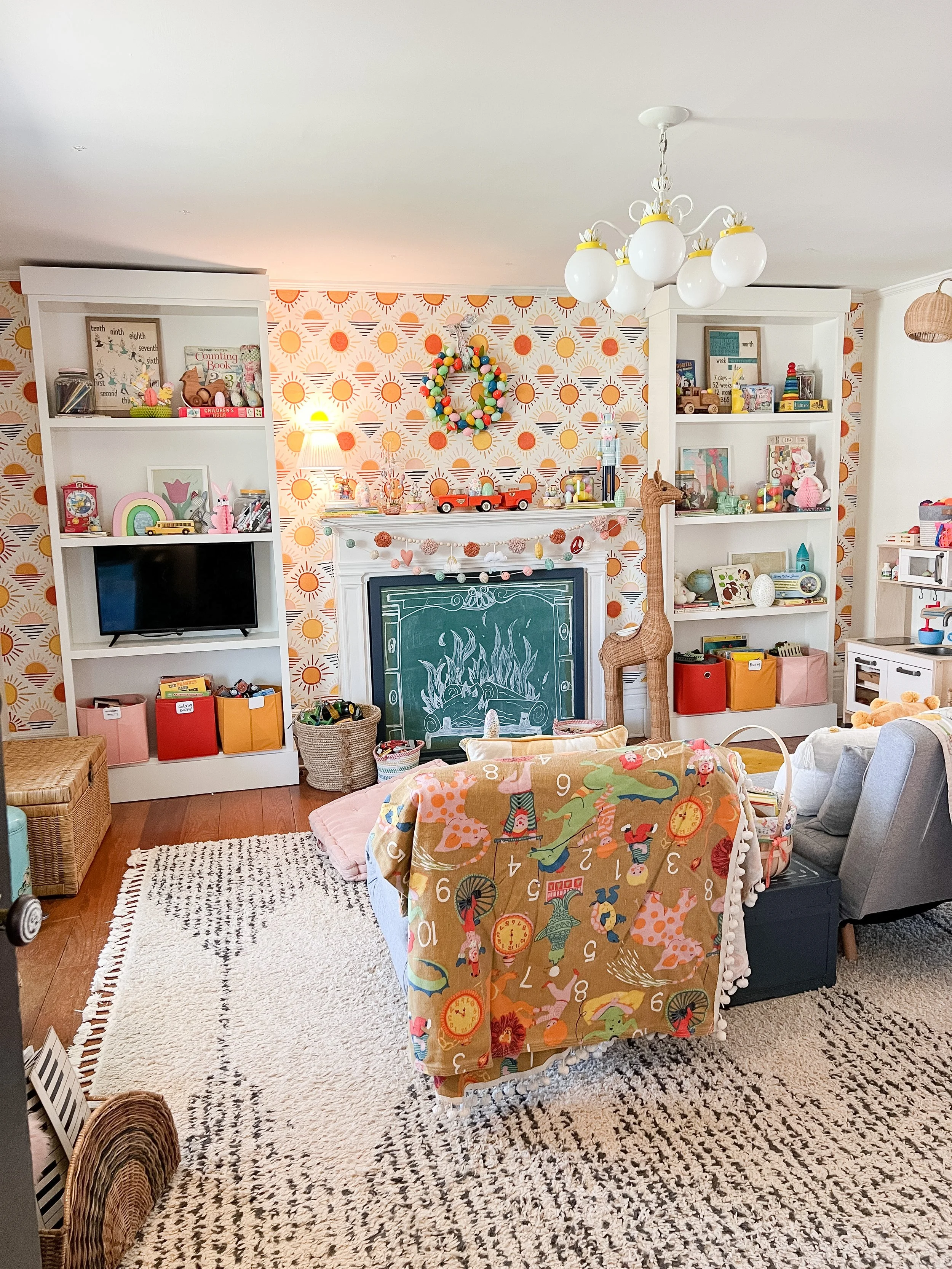 Come inside our Vintage Easter Playroom! Many of the little Easter decorations and trinkets were mine when I was younger, so I love incorporating them into this space yearly! We also fill the bookshelves with ALL the fun spring and Easter books - can you spot any of your favorites?