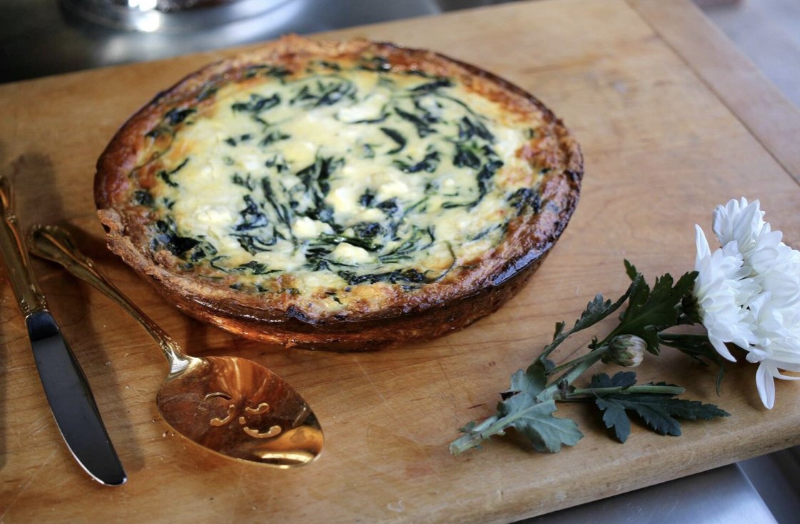 No brunch spread is complete without a quiche!  This delicious savory quiche includes a one of my favorite combos: spinach + feta.  It's the perfect balance to all the sweet dishes and treats I served at our blogger brunch and was definitely the dish I got the most compliments on!  I used a frozen pie crust to make this recipe even quicker and easier, but if you prefer to make your own crust from scratch that's always an option. Click here for this recipe.