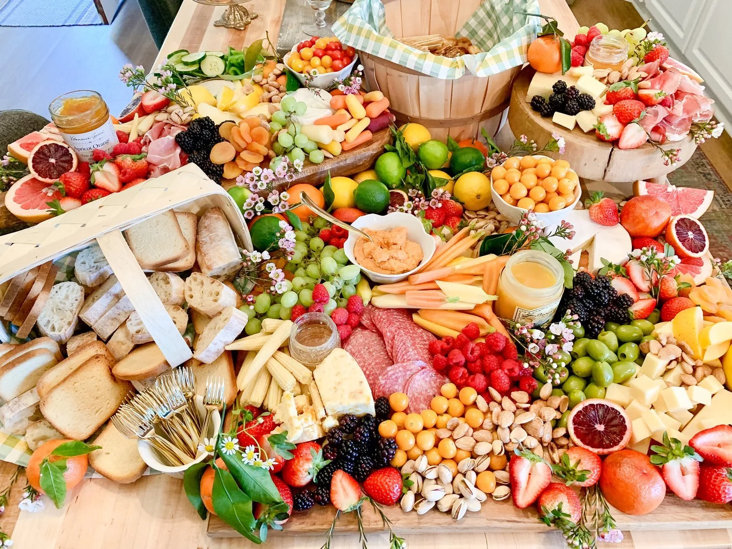 I never turn down a good opportunity to put together a giant cheeseboard! This extra large spring grazing board had all the beautiful bright spring colors and textures to really make a statement. You can find all the ingredients for this one and instructions for assembling here!