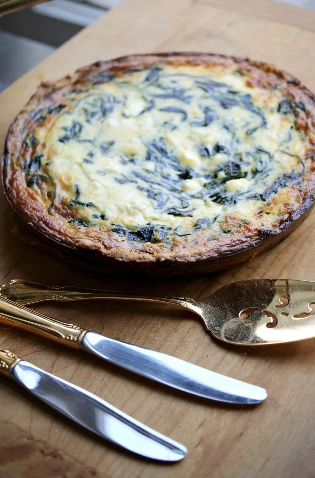 No brunch spread is complete without a quiche!  This delicious savory quiche includes a one of my favorite combos: spinach + feta.  It's the perfect balance to all the sweet dishes and treats I served at our blogger brunch and was definitely the dish I got the most compliments on!  I used a frozen pie crust to make this recipe even quicker and easier, but if you prefer to make your own crust from scratch that's always an option. Click here for this recipe.