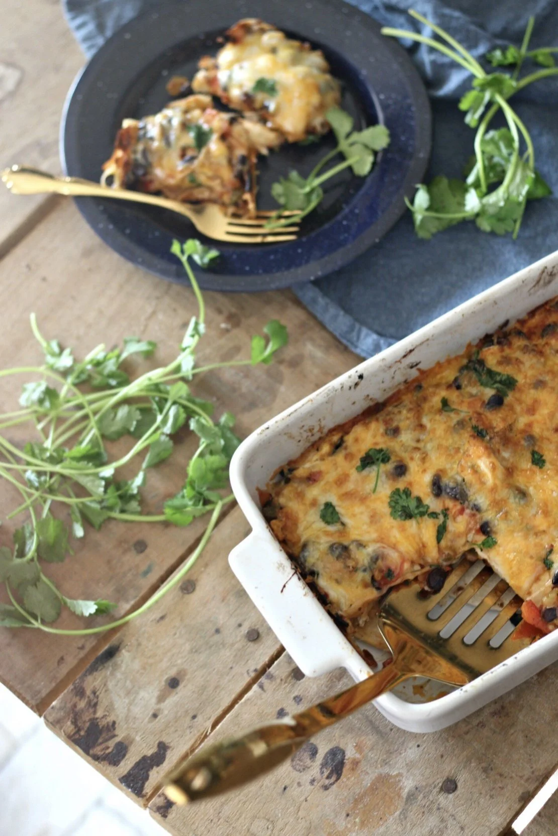 This veggie loaded casserole has a little bit of everything and is the perfect easy, quick, and healthy weeknight meal! Seasoned roasted vegetables and chicken are layered up with black beans, fresh cilantro, salsa, tortillas, and topped with plenty of cheese! I love the extra flavor and texture that the roasting adds to the vegetables- the roasting method I used in this recipe is my favorite way to cook veggies for any meal! Click here for this recipe.